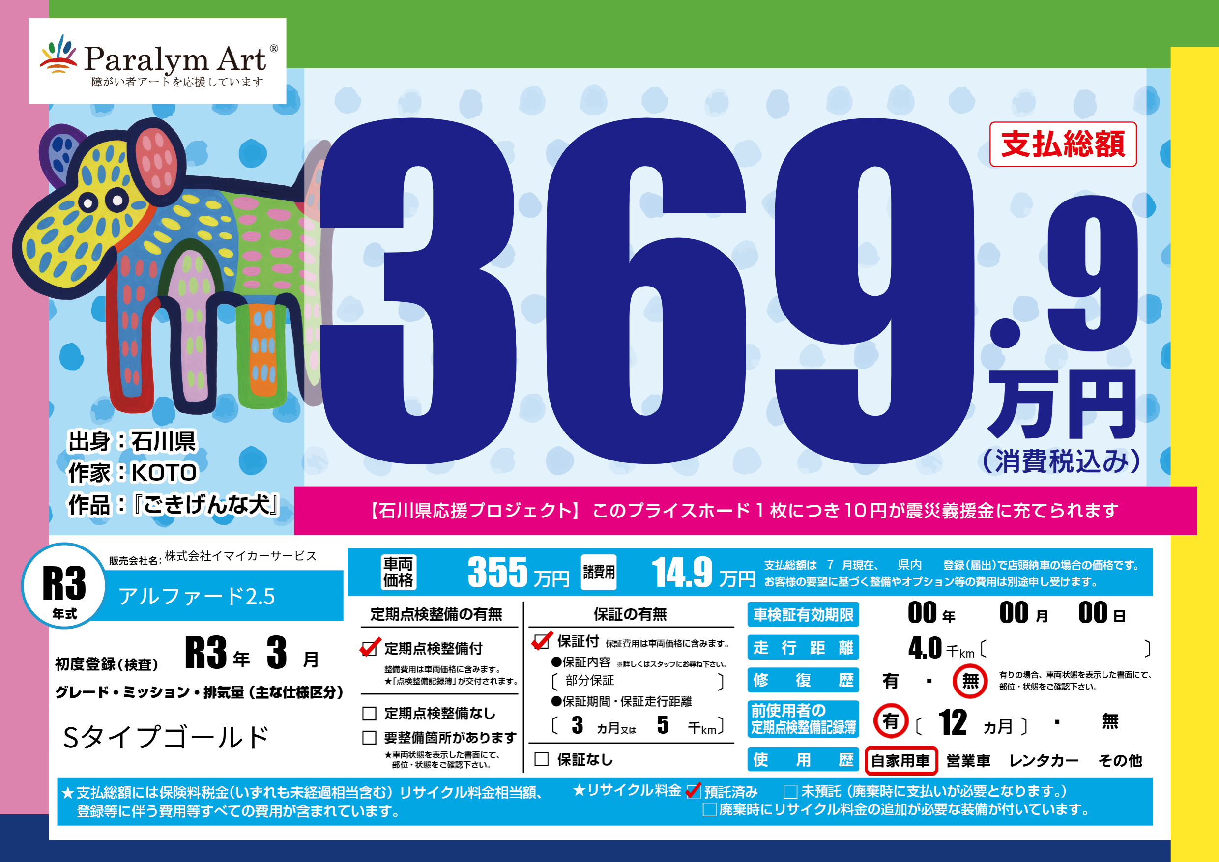 | 走行キロ | 0.4万km | 初年度登録 | R3年3月 |