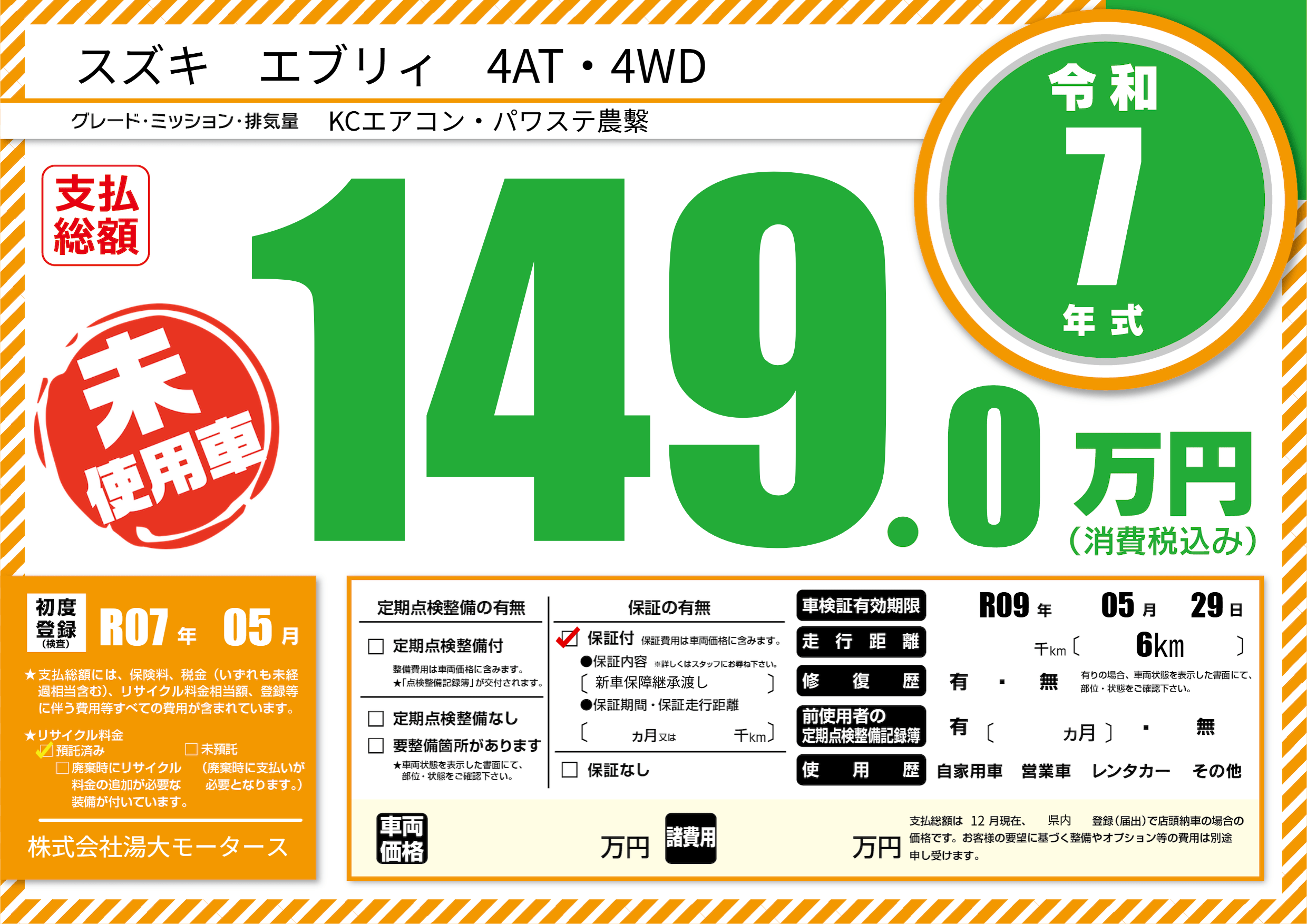 | 走行キロ | - | 初年度登録 | R07年05月 |