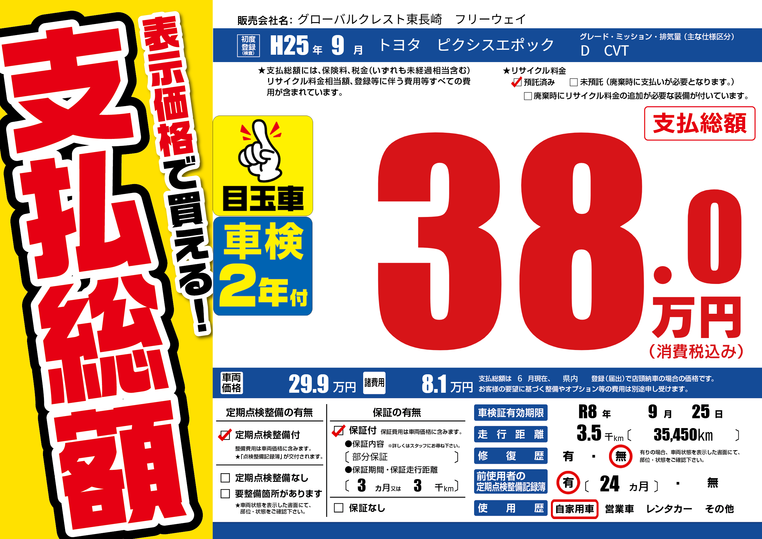 なし | 車検制限 | R8年9月25月 |