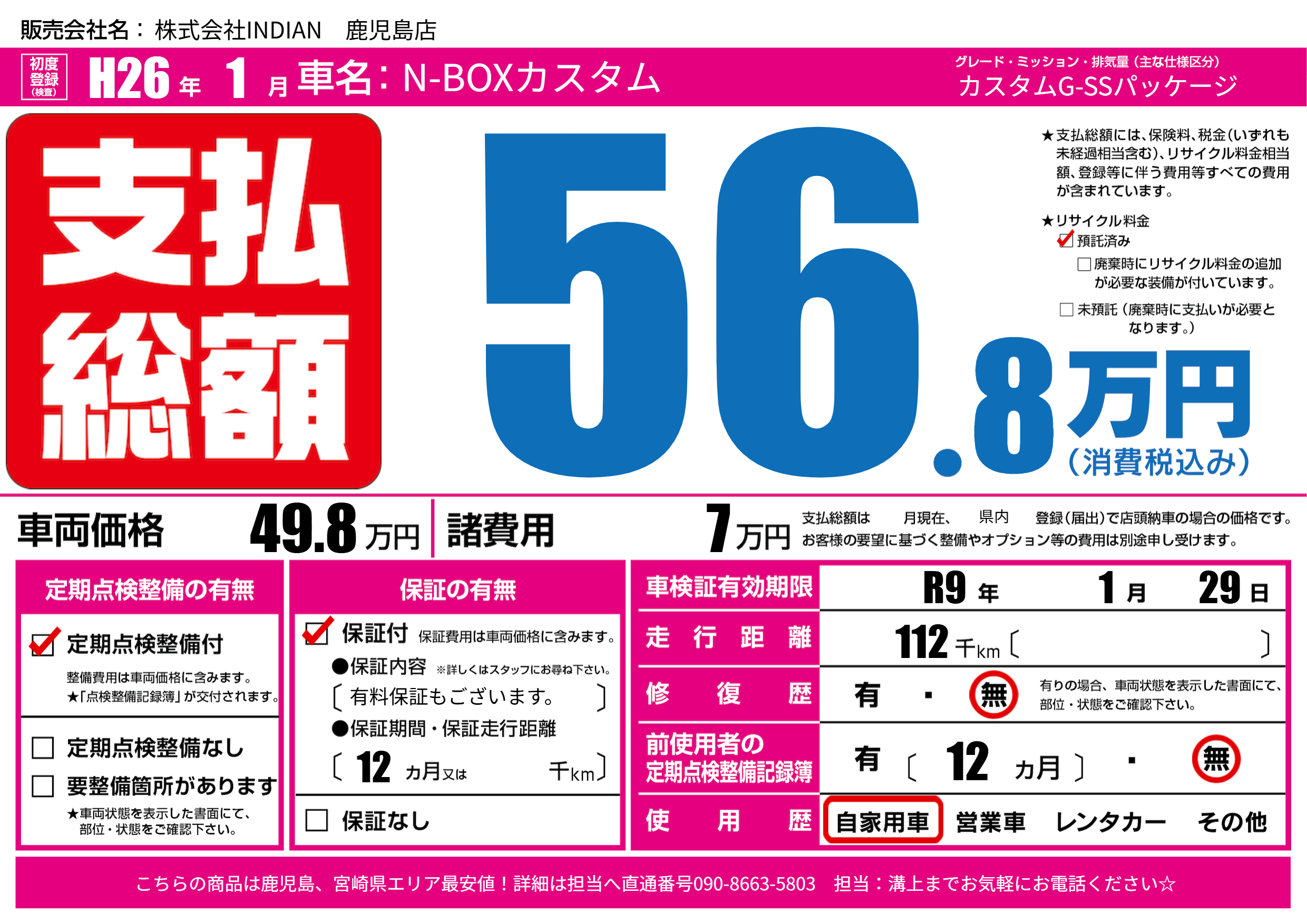 なし | 車検制限 | R9年1月29月 |