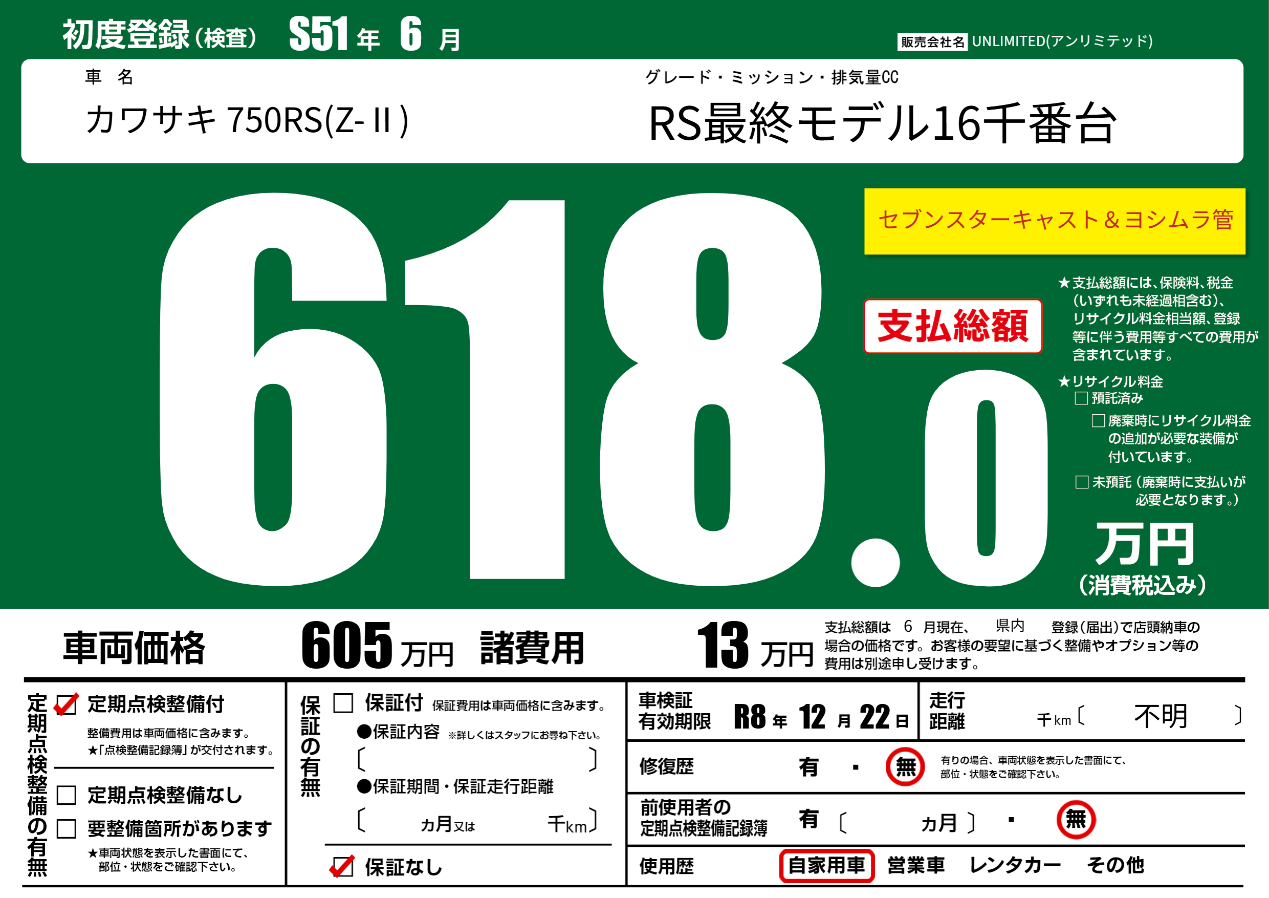 なし | 車検制限 | R8年12月22月 |