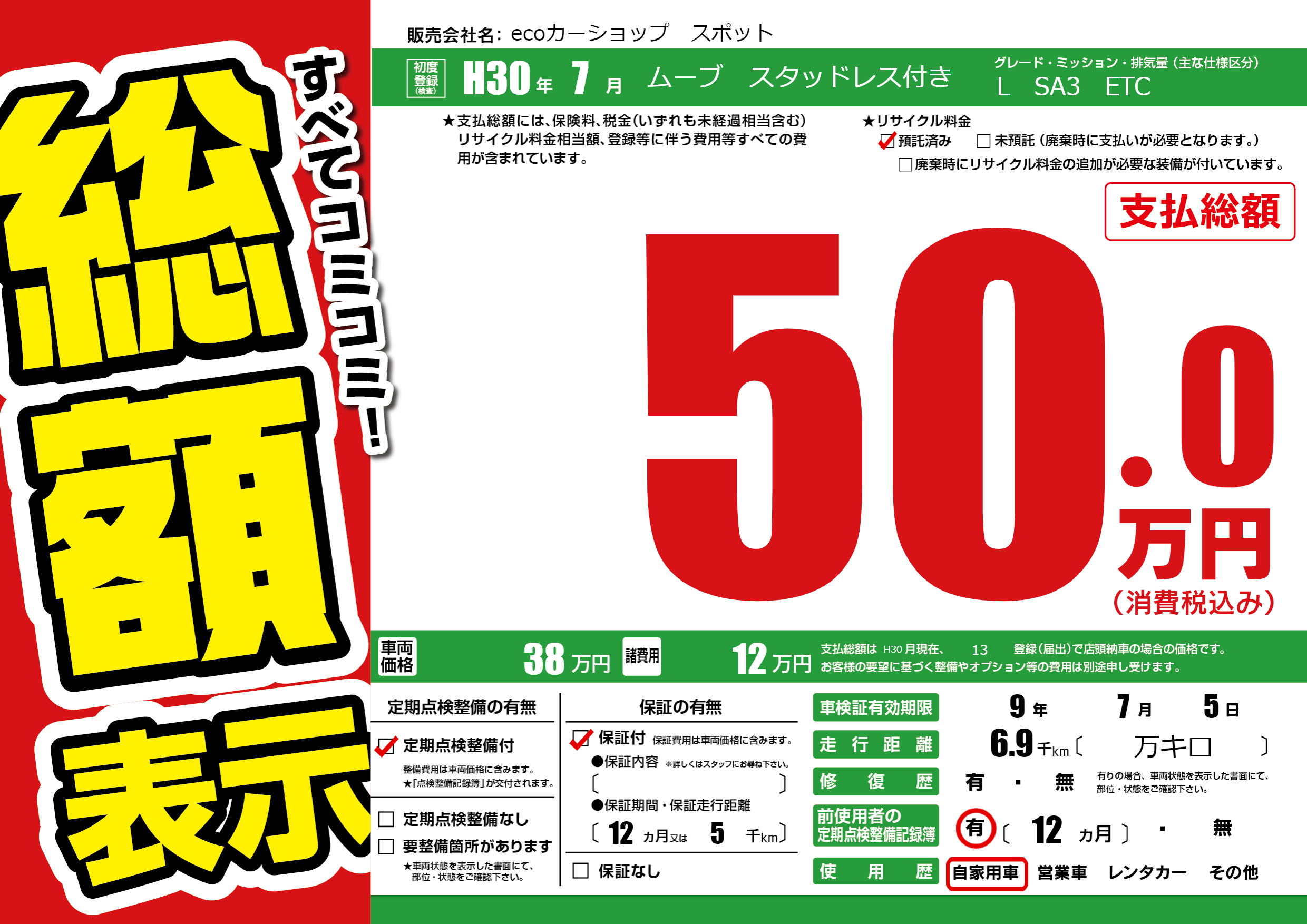 | 初年度登録 | H30年7月 | ||