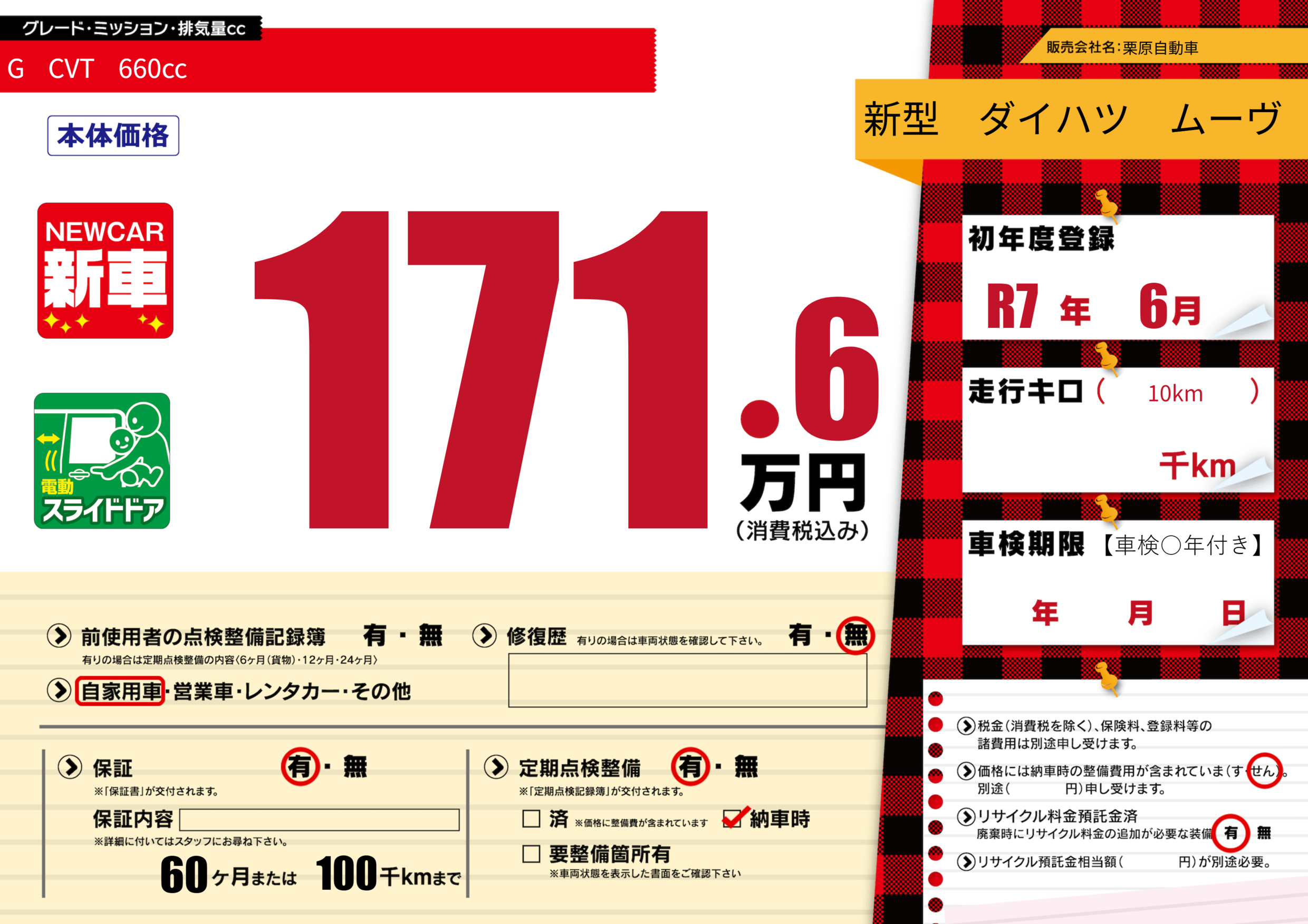 保証付き 保証内容(---) 60ヶ月または(100)千kmまで |