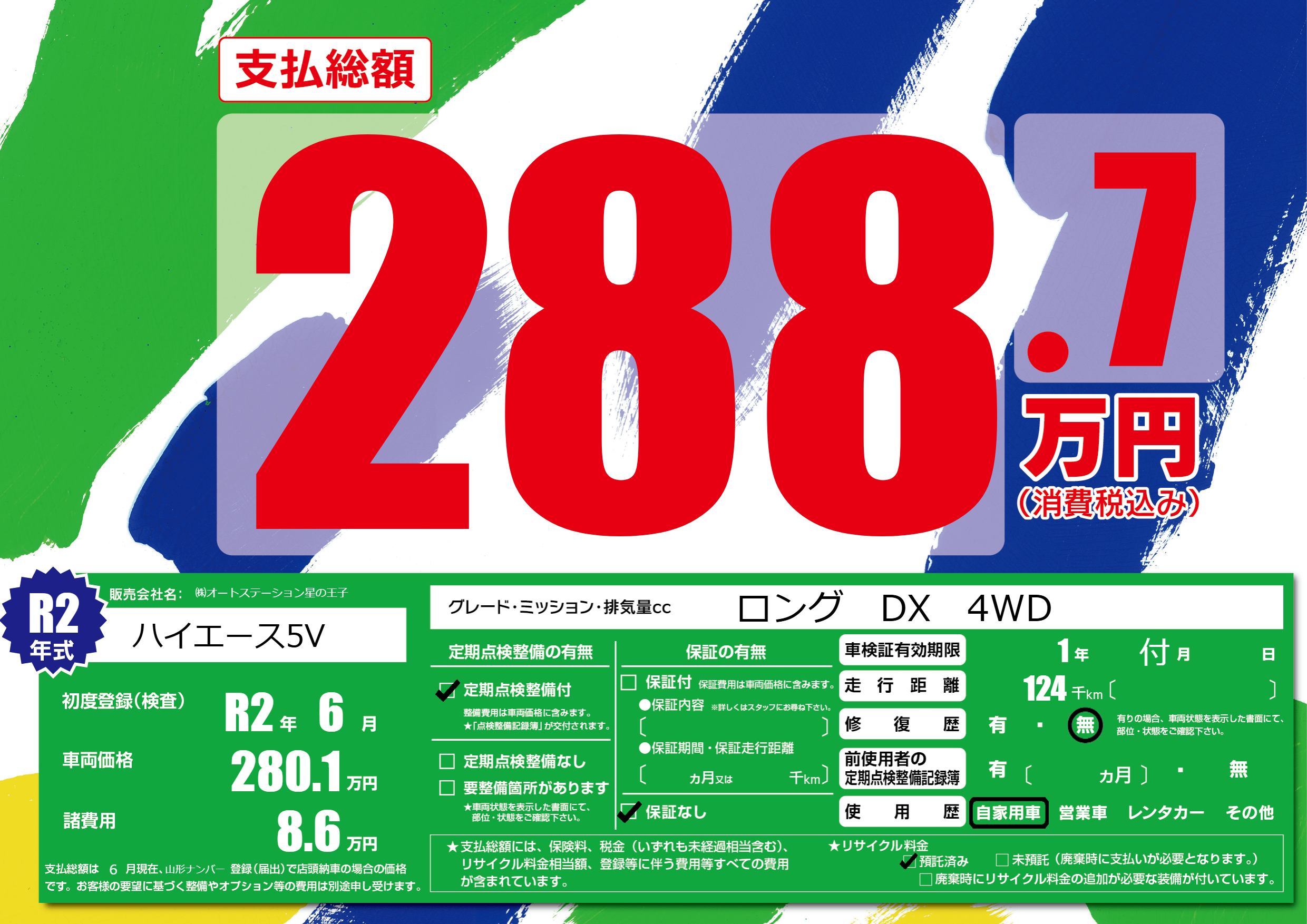 なし | 車検制限 | 1年付月---月 |