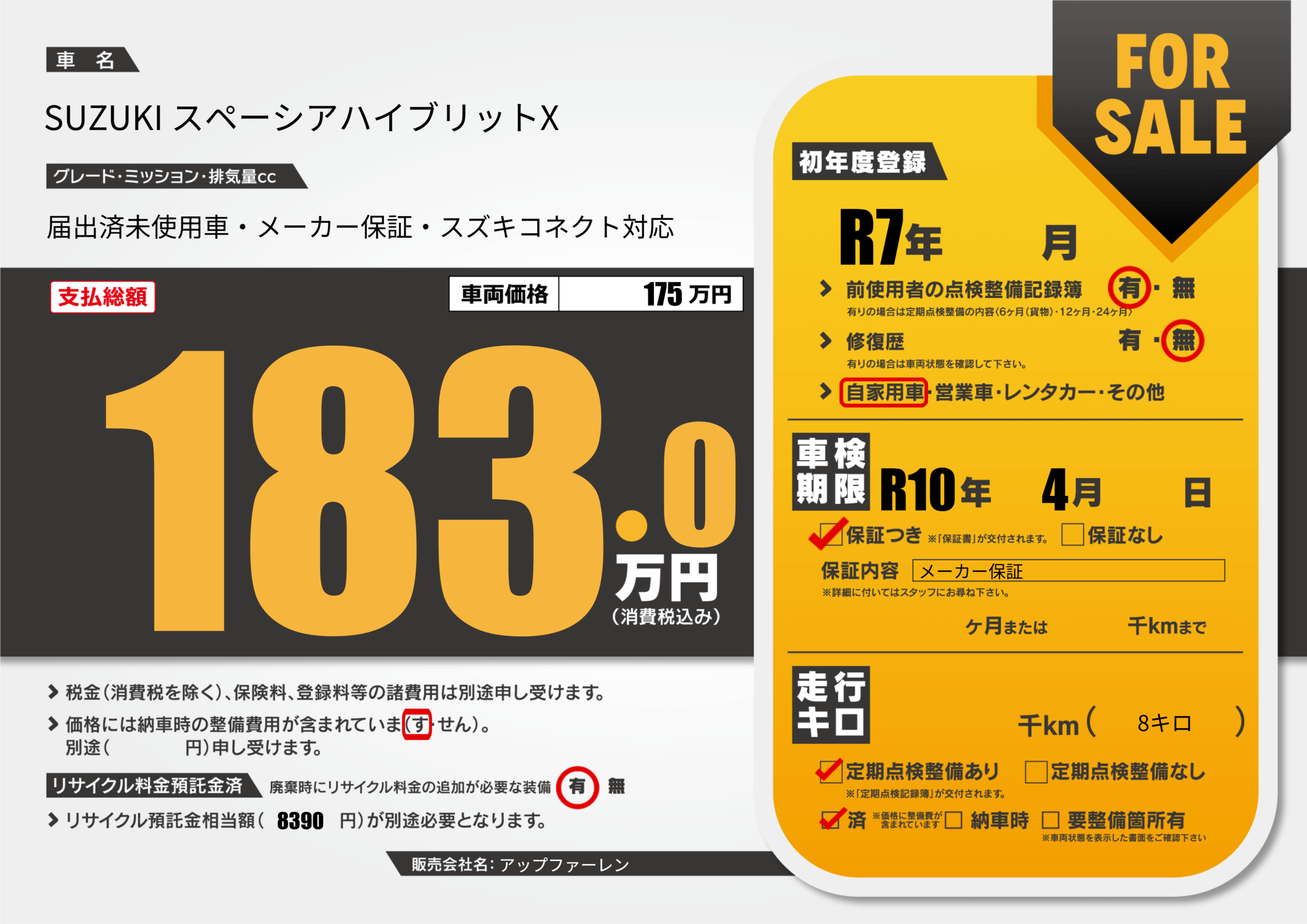 | 定期点検整備 | 定期点検整備あり 定期点検整備済み | ||