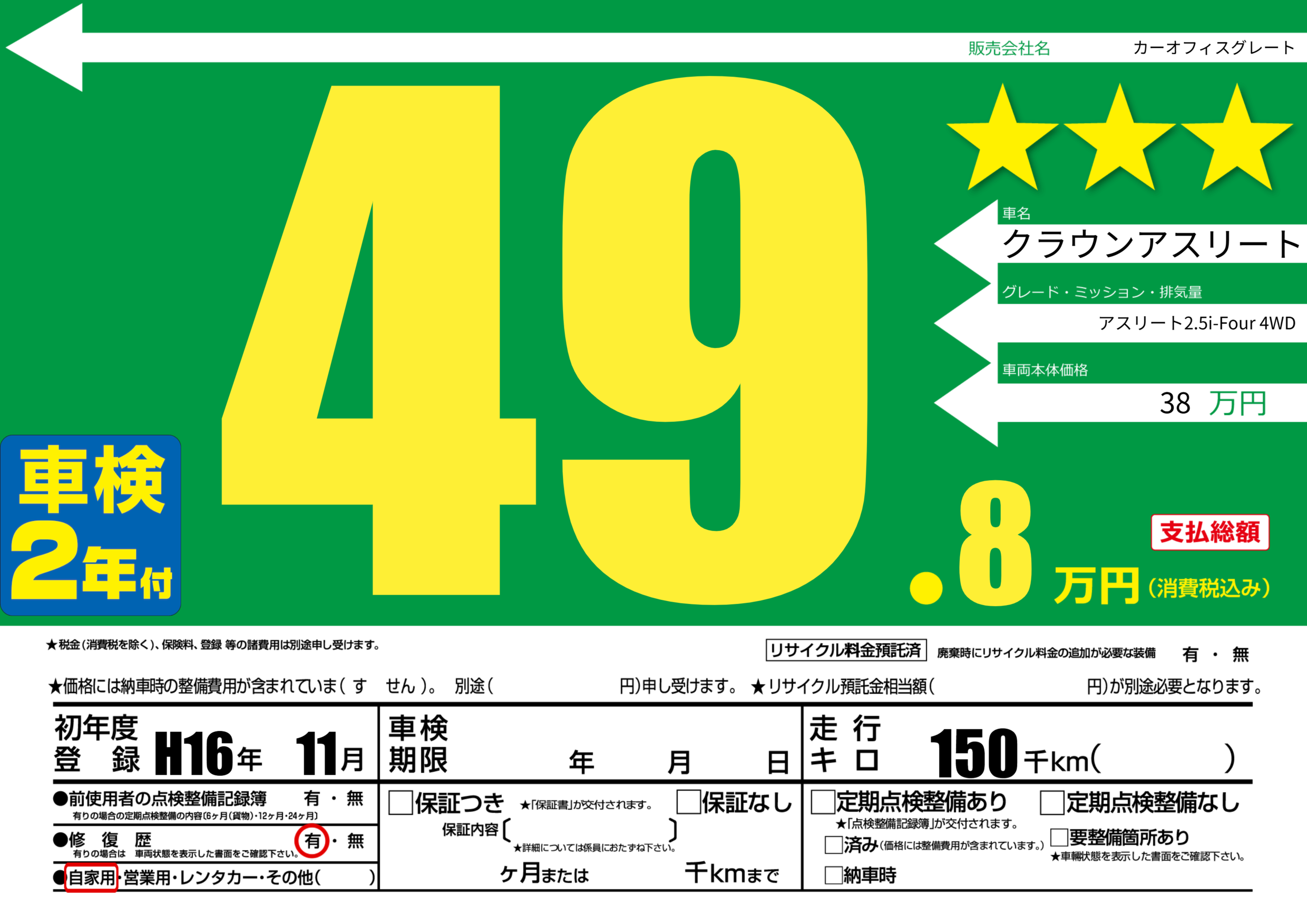| 車名 | クラウンアスリート | グレード ミッション 排気量 |