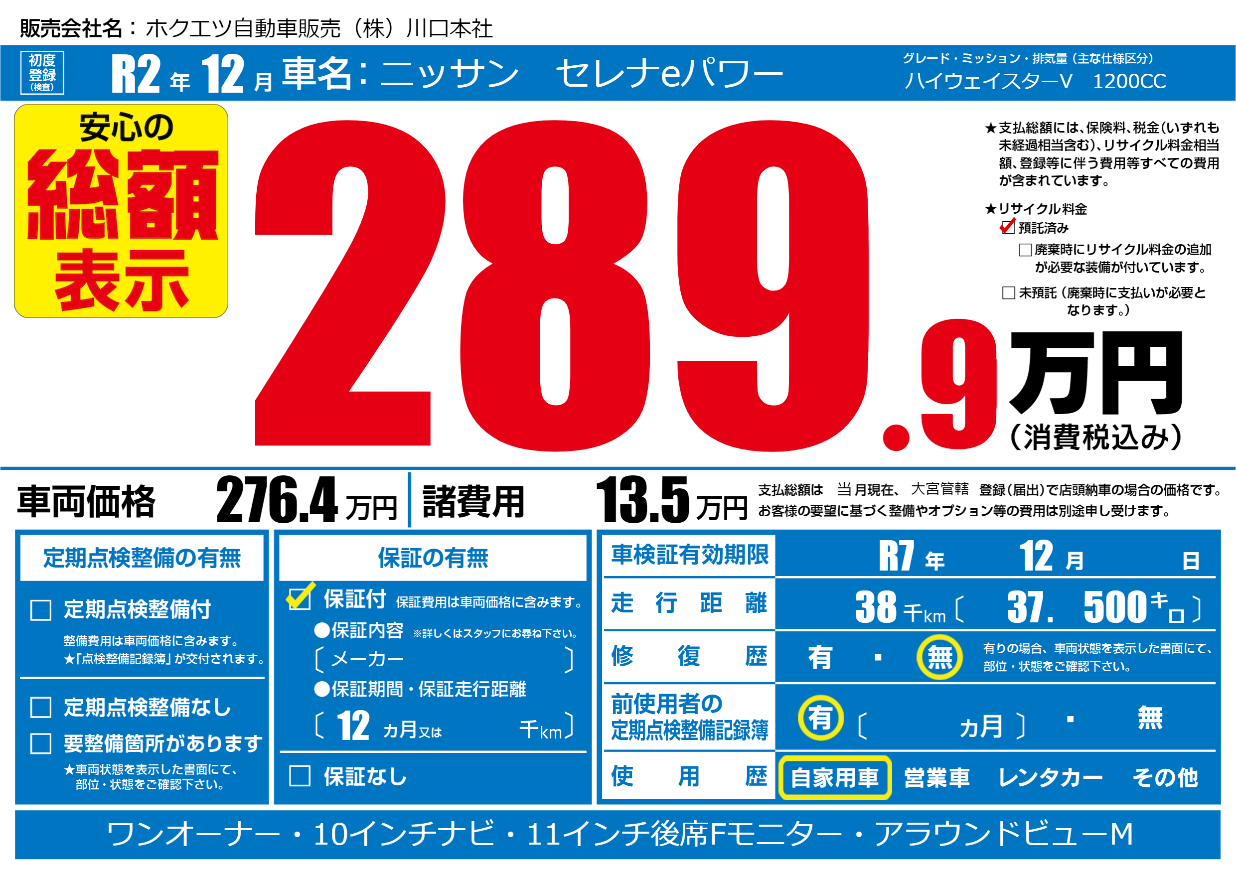 保証付き 保証内容(メーカー) 12ヶ月または千km |