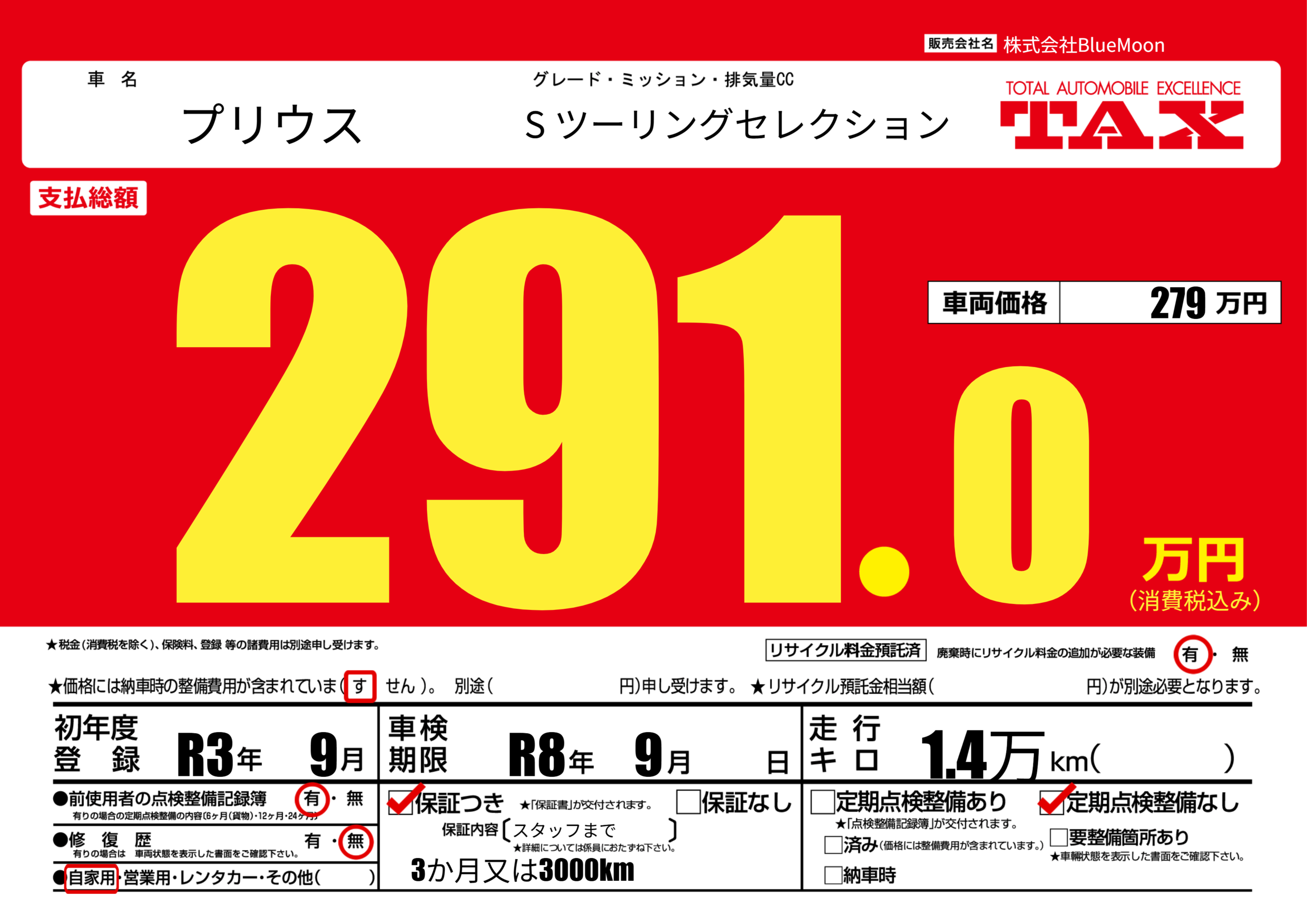 保証付き 保証内容(スタッフまで) ---ヶ月または()千kmまで |