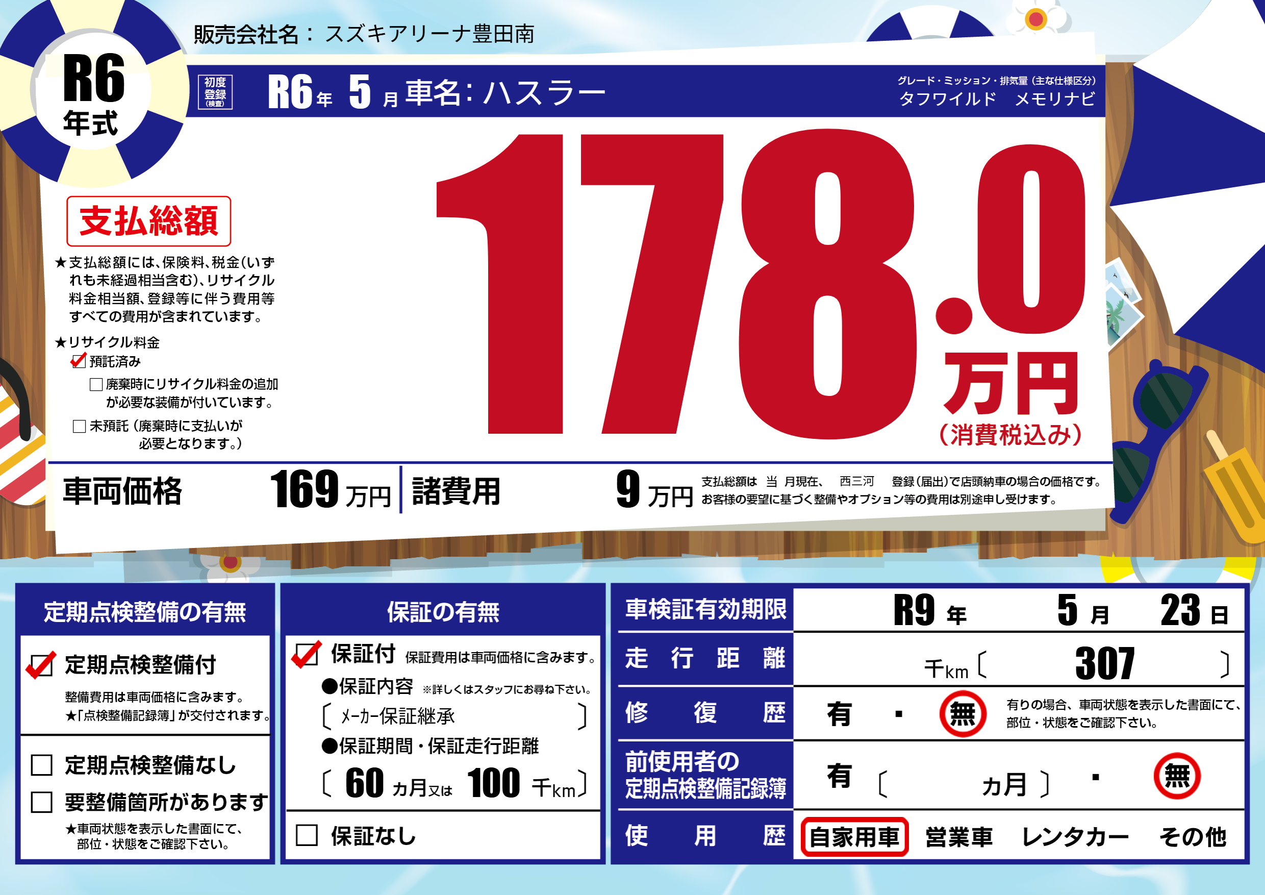 | 走行キロ | - | 初年度登録 | R6年5月 |