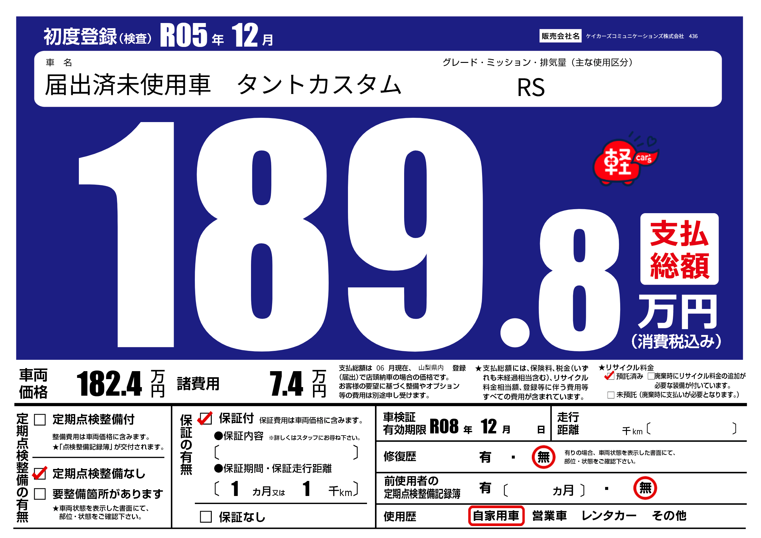| 車検制限 | R08年 12月 - 日 | ||