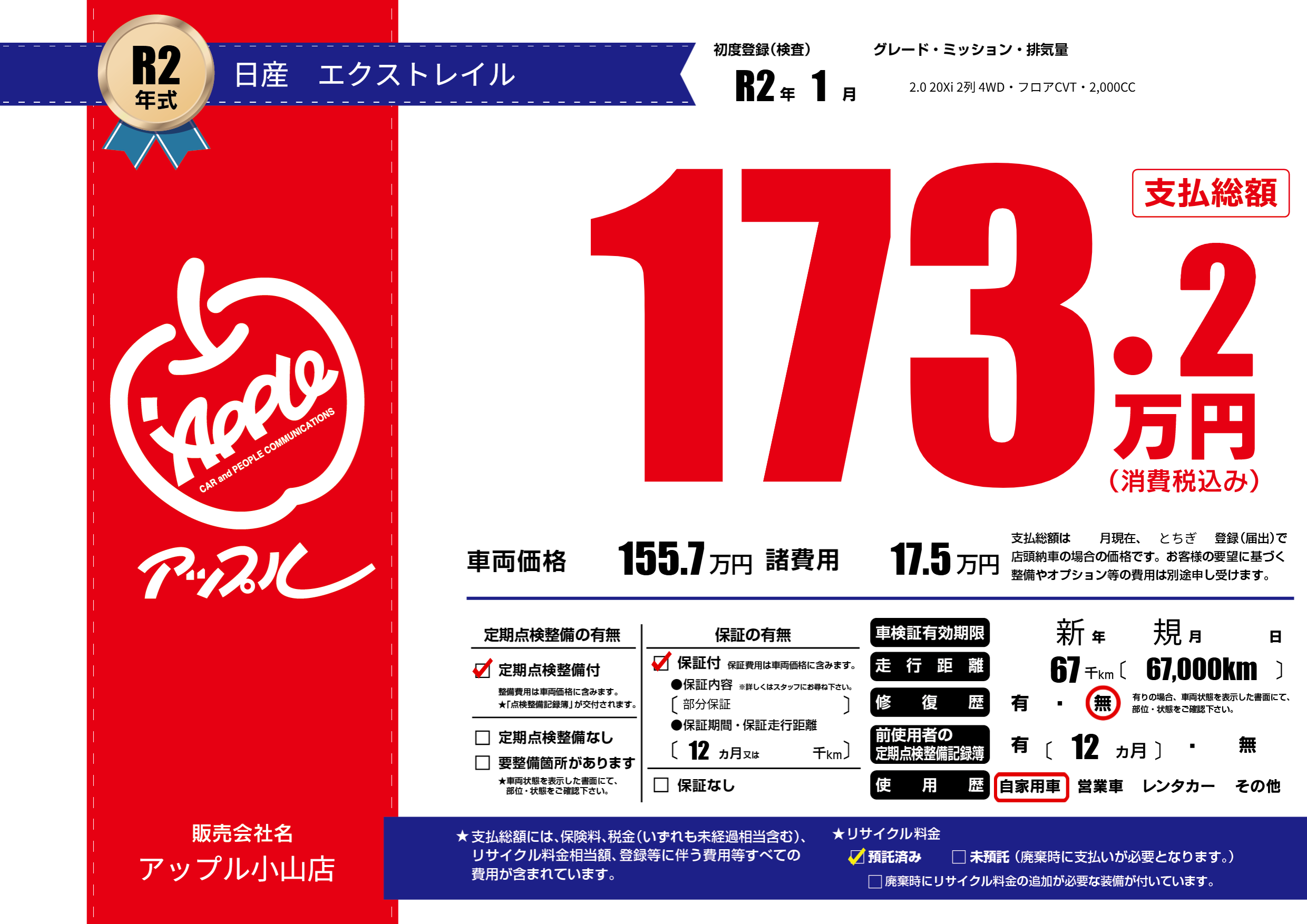 | 定期点検整備 | 定期点検整備あり | ||