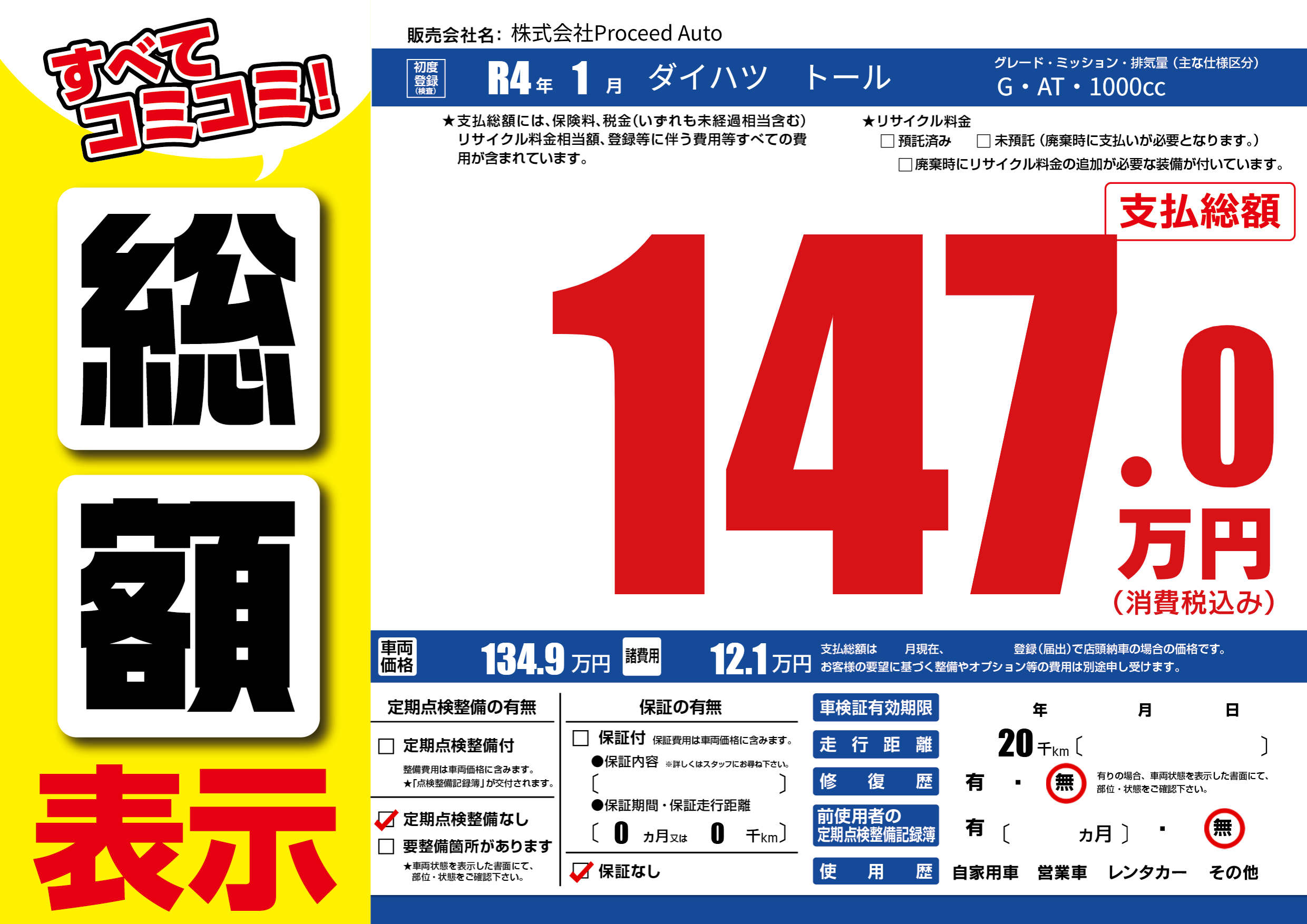 | 定期点検整備 | 定期点検整備なし | ||