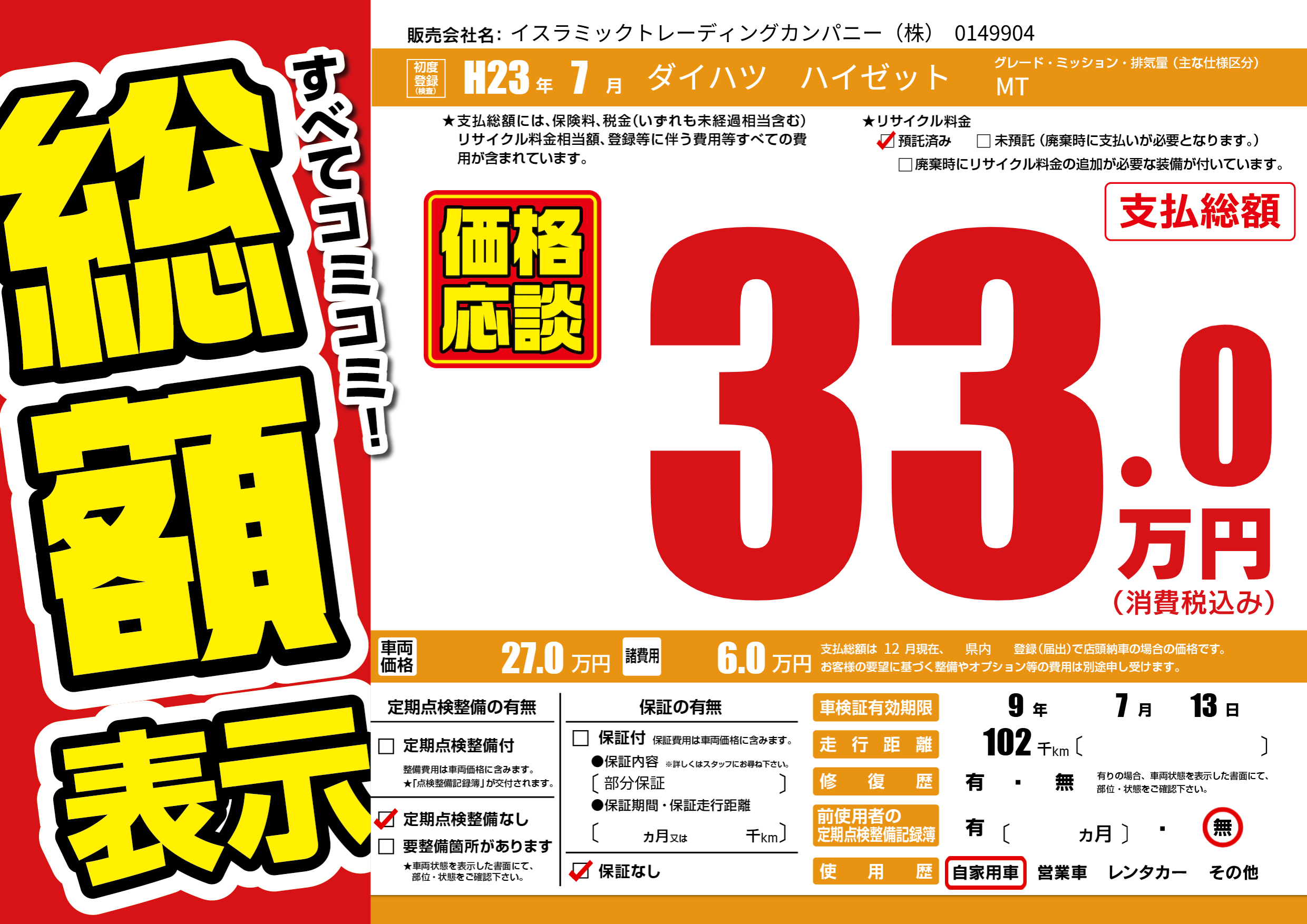 | 車検制限 | 9年 7月 13日 | ||