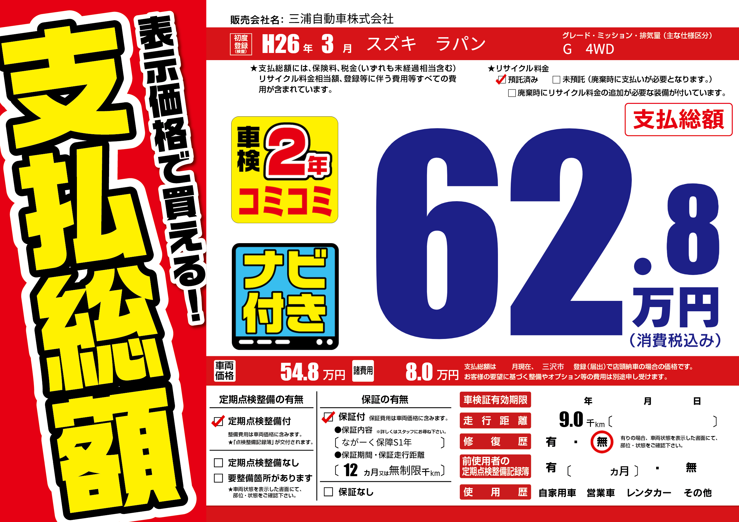 | 車検制限 | - 年 - 月 - 日 | ||