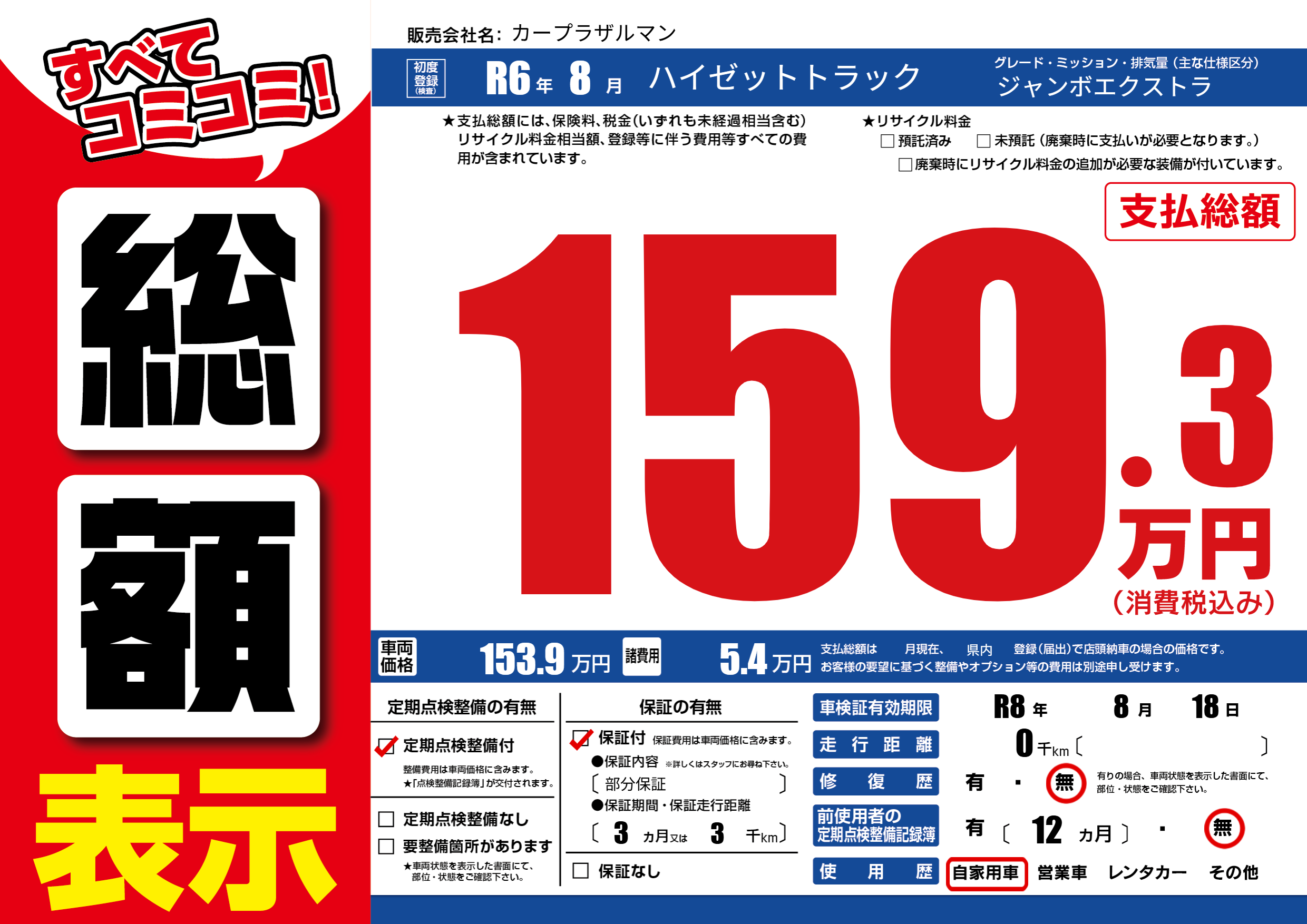 | 走行キロ | - | 初年度登録 | R6年8月 |