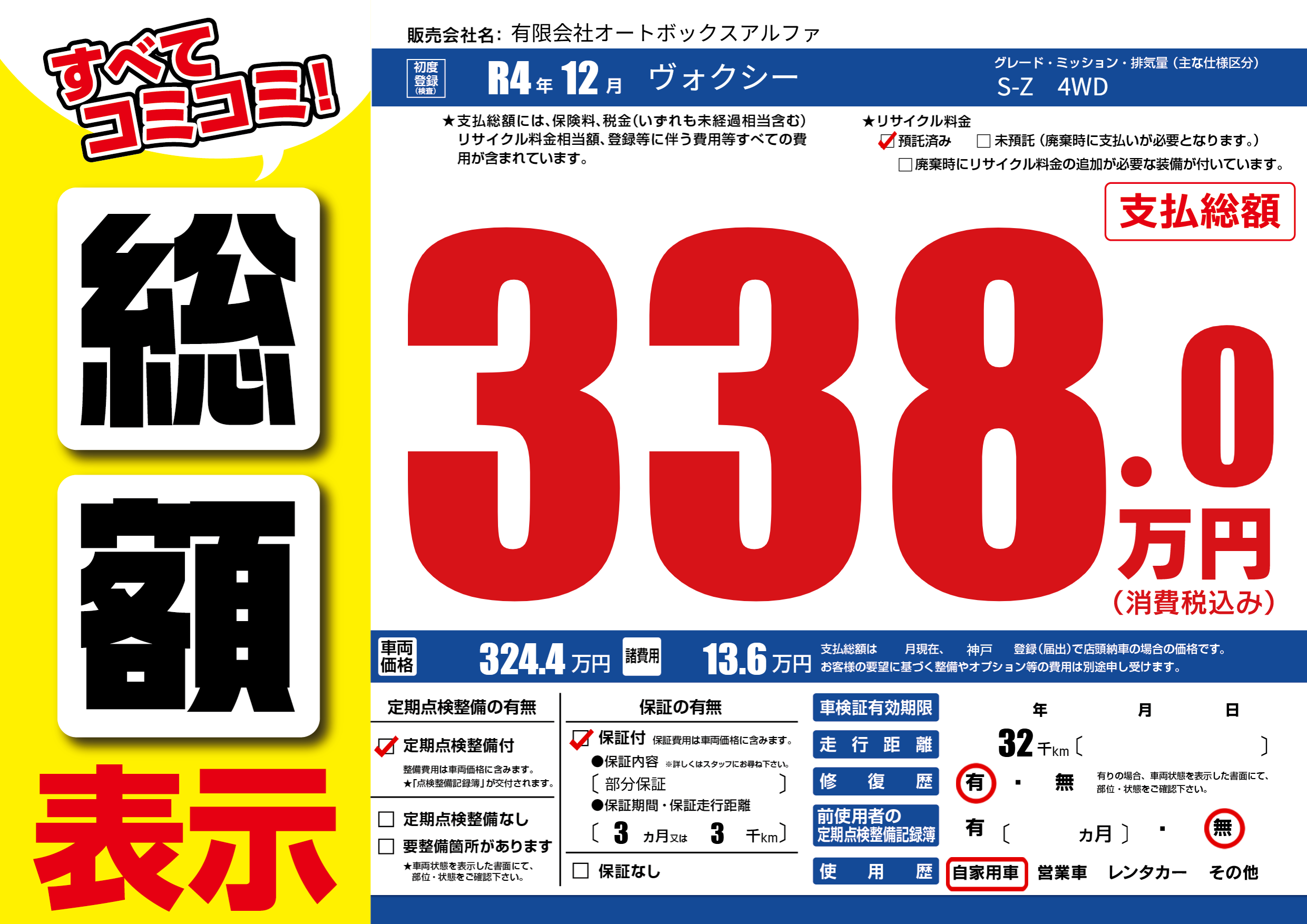 保証付き 保証内容(部分保証) 3ヶ月または(3)千kmまで |
