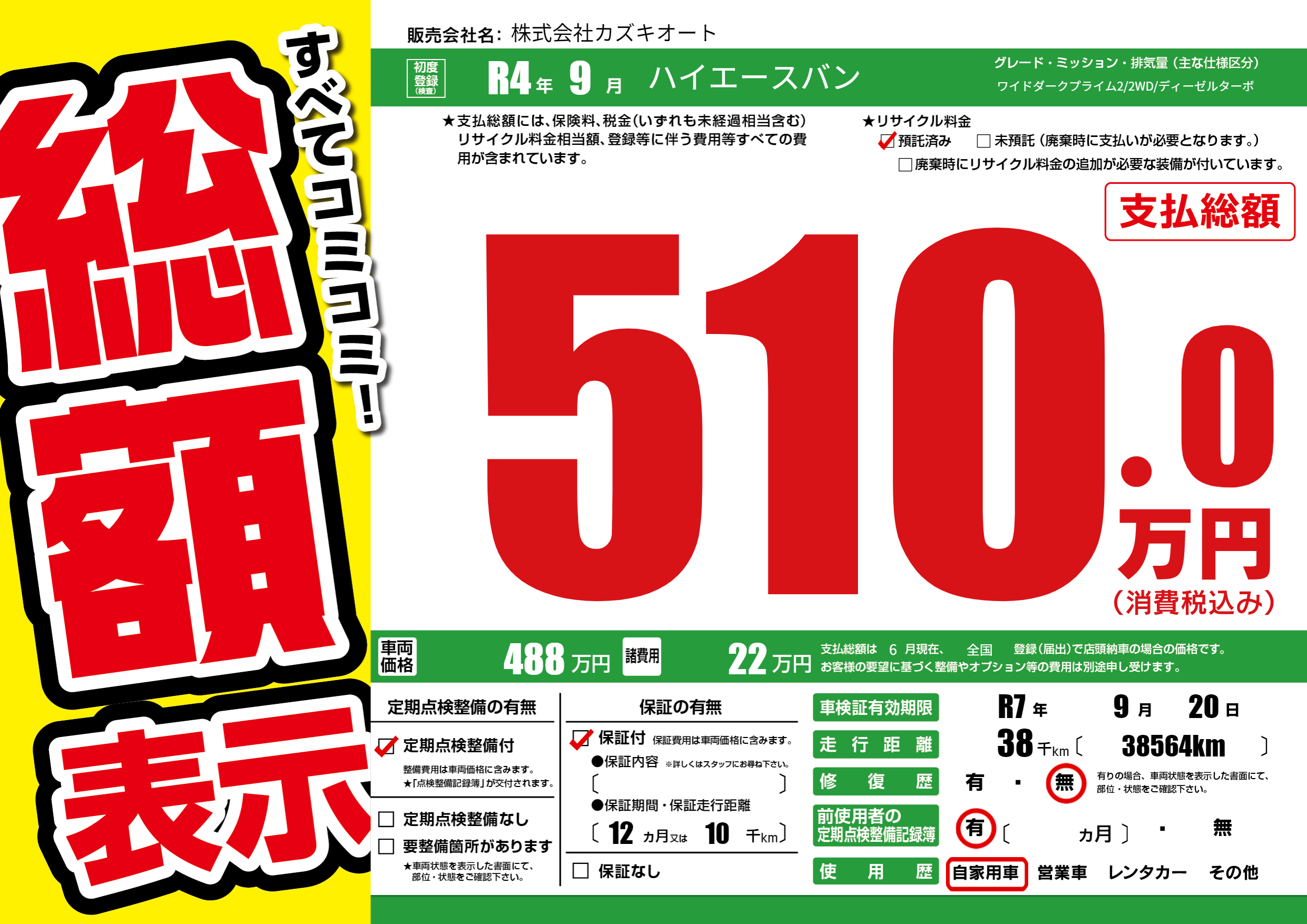 | 車検制限 | R7年 9月 20日 | ||