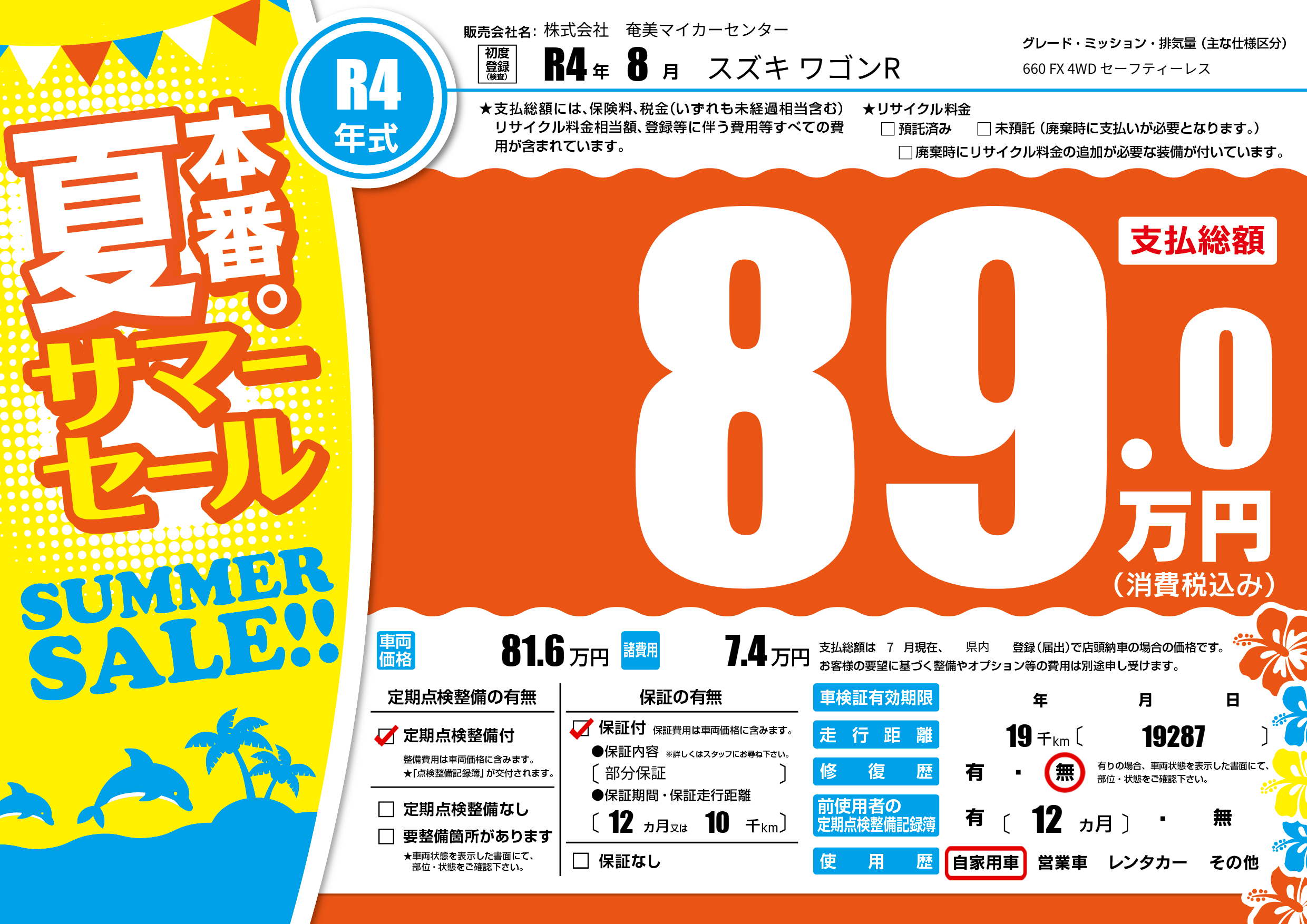 | 走行キロ | 1.9万km | 初年度登録 | R4年8月 |