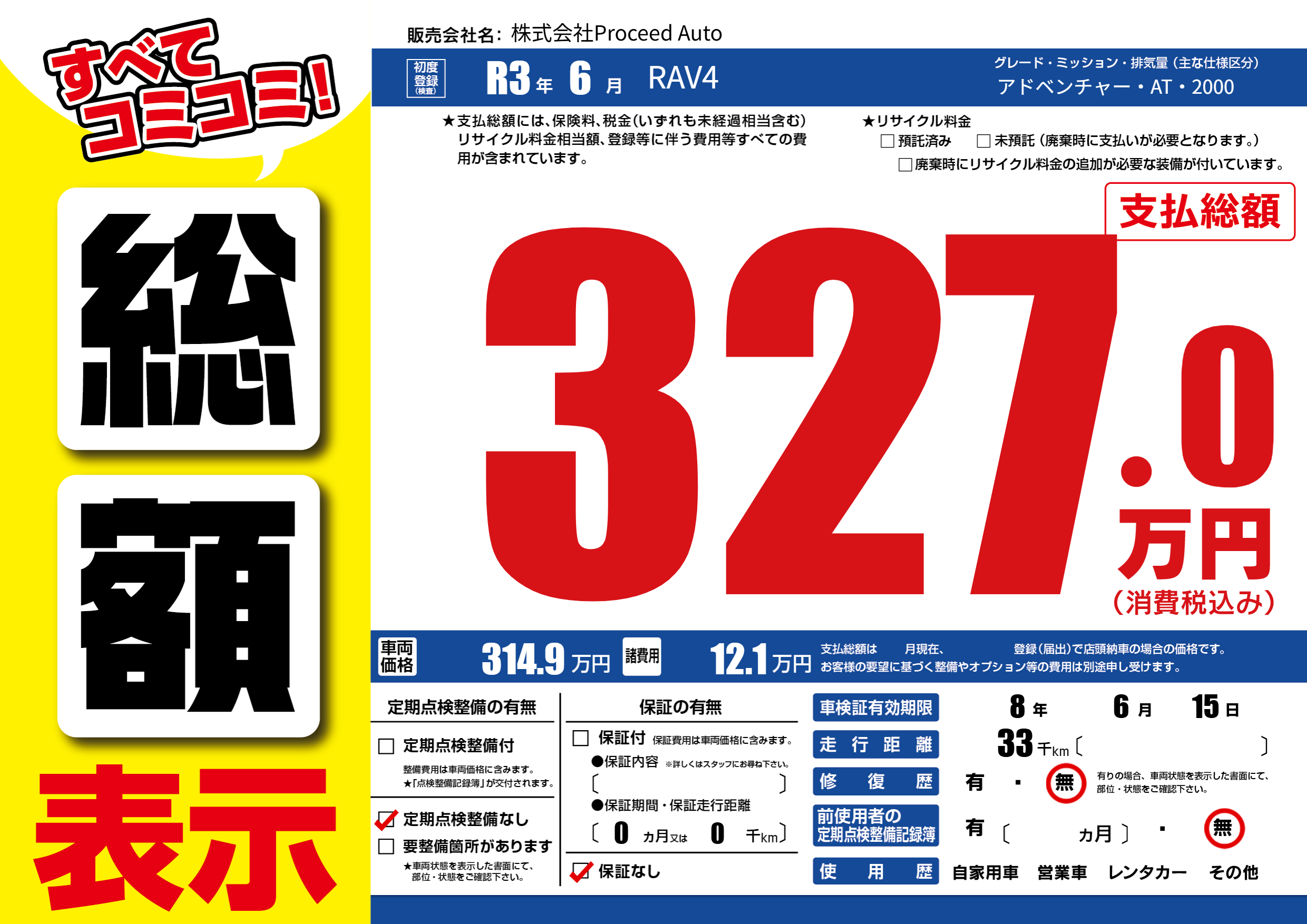| 車名 | RAV4 | グレード ミッション 排気量 |