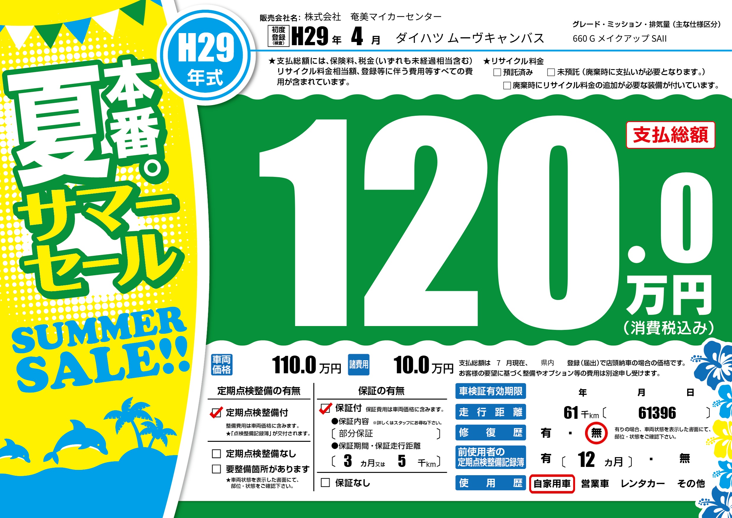| 走行キロ | 6.1万km | 初年度登録 | H29年4月 |