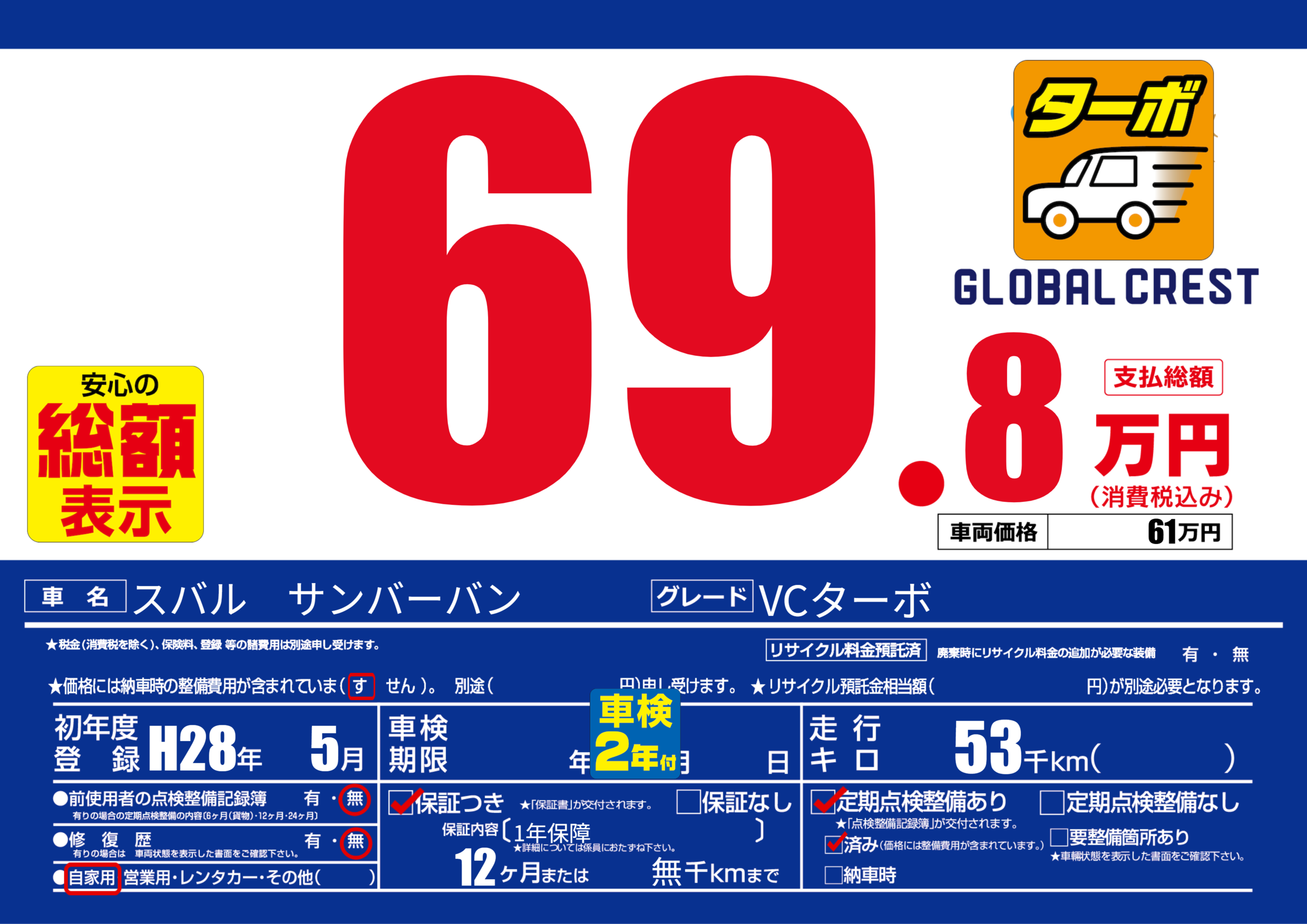 | 定期点検整備 | 定期点検整備あり 定期点検整備済み | ||