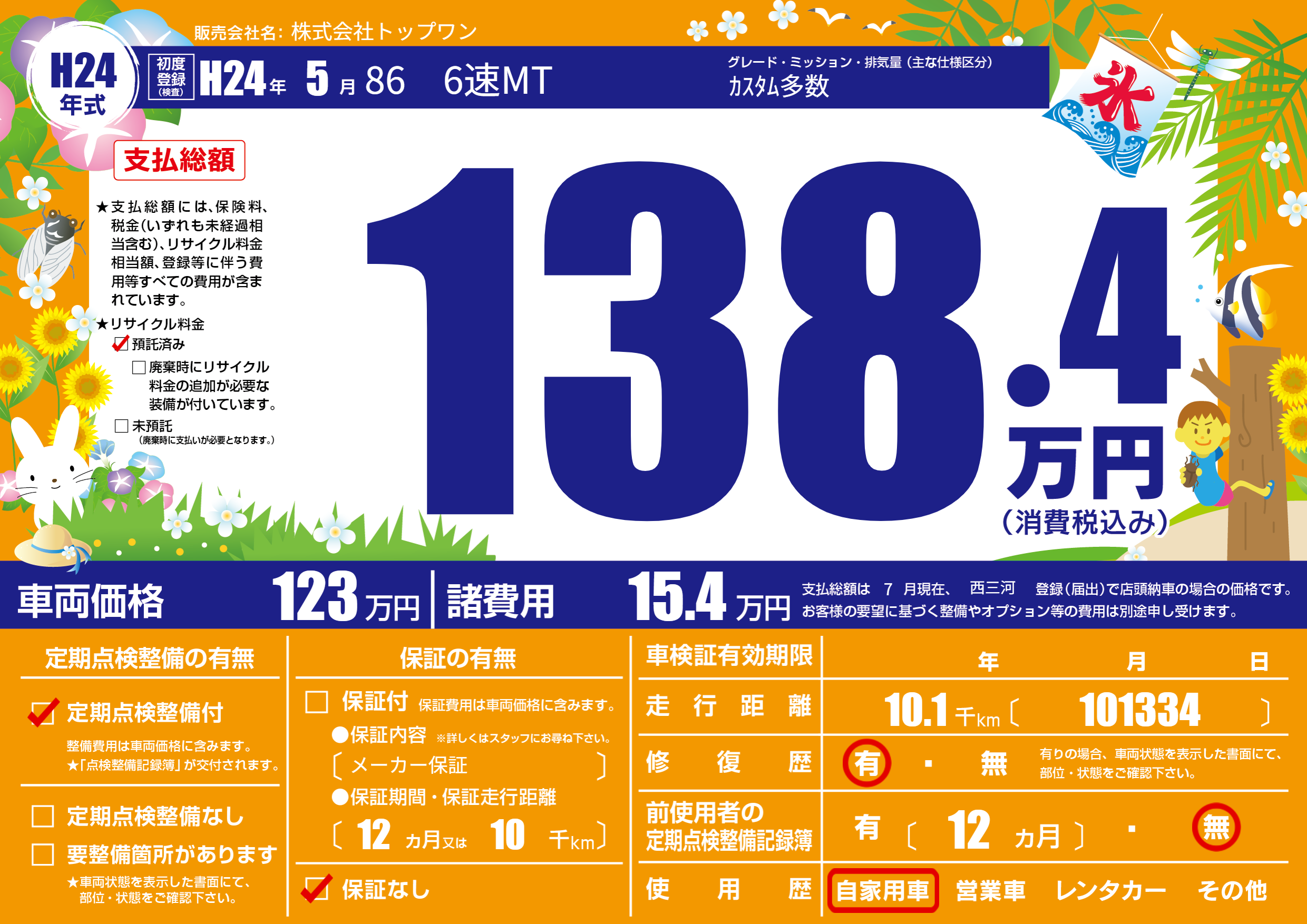 | 定期点検整備 | 定期点検整備あり | ||
