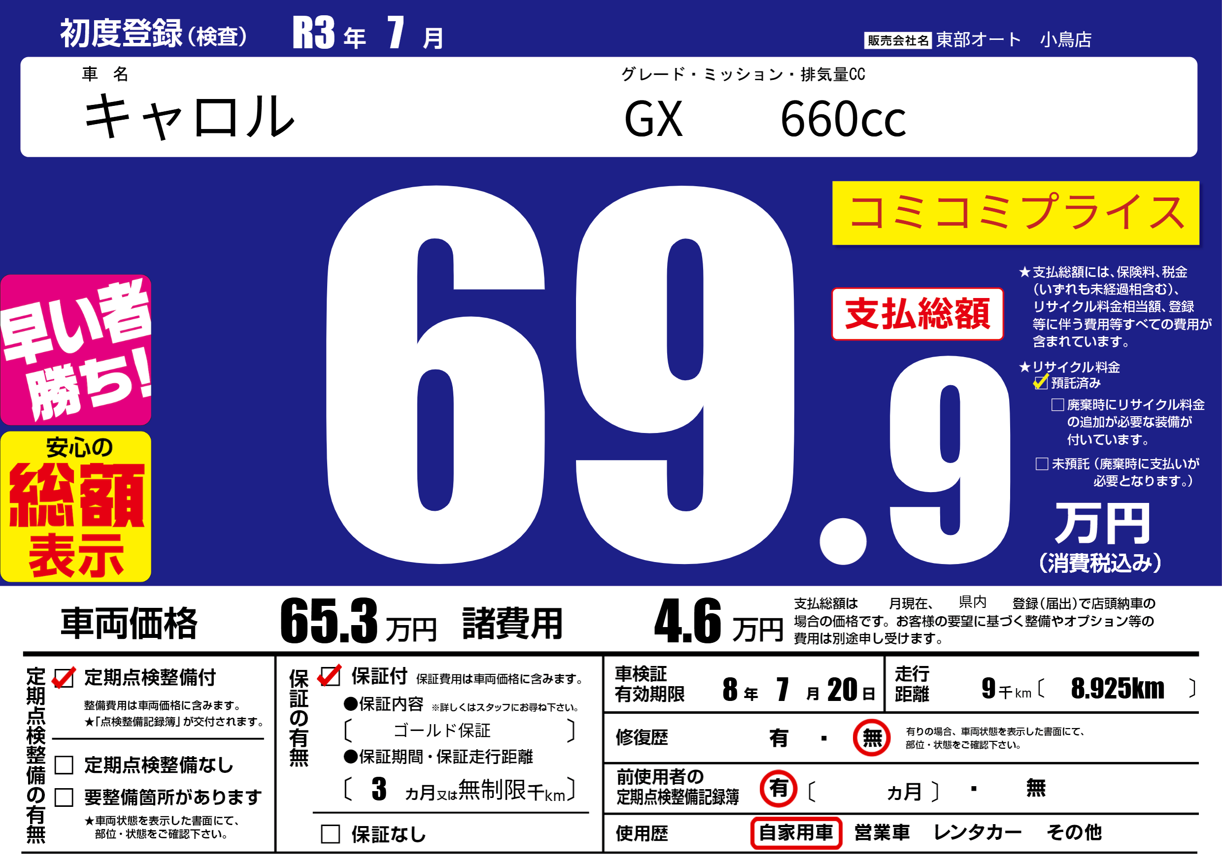 なし | 車検制限 | 8年7月20月 |