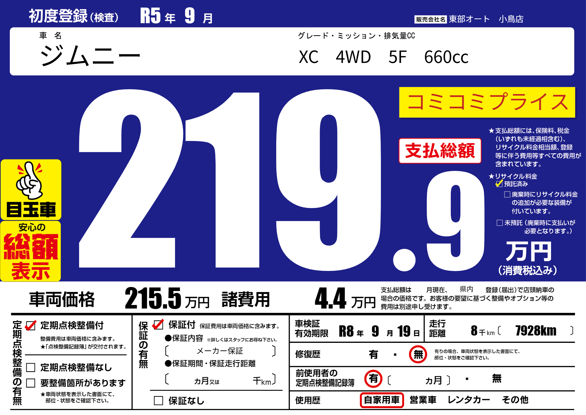 | 車名 | ジムニー | グレード ミッション 排気量 |