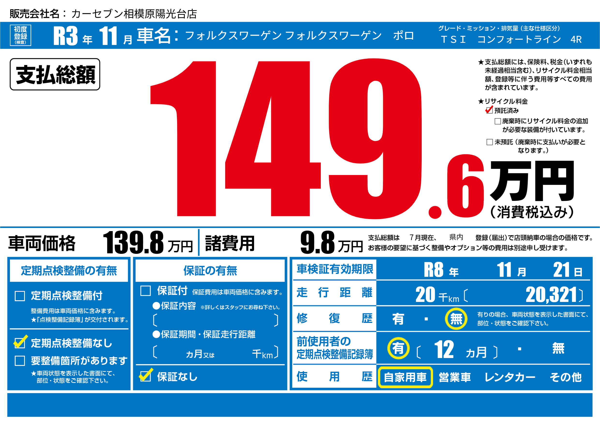 なし | 車検制限 | R8年11月21月 |