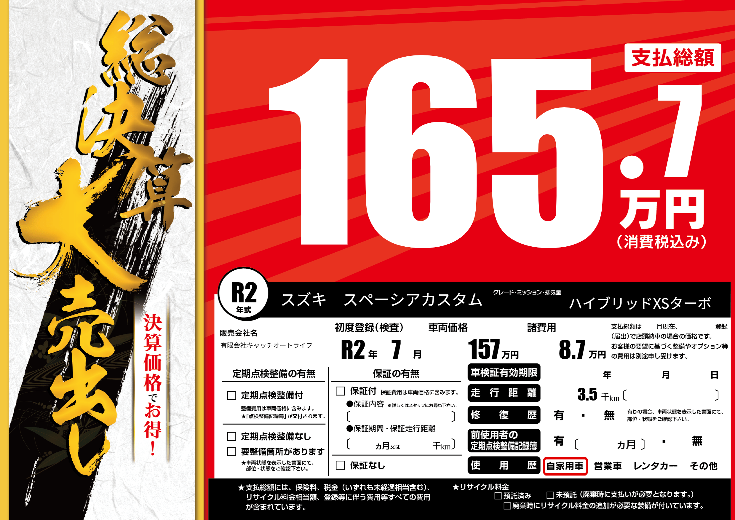 | 走行キロ | 0.3万km | 初年度登録 | R2年7月 |