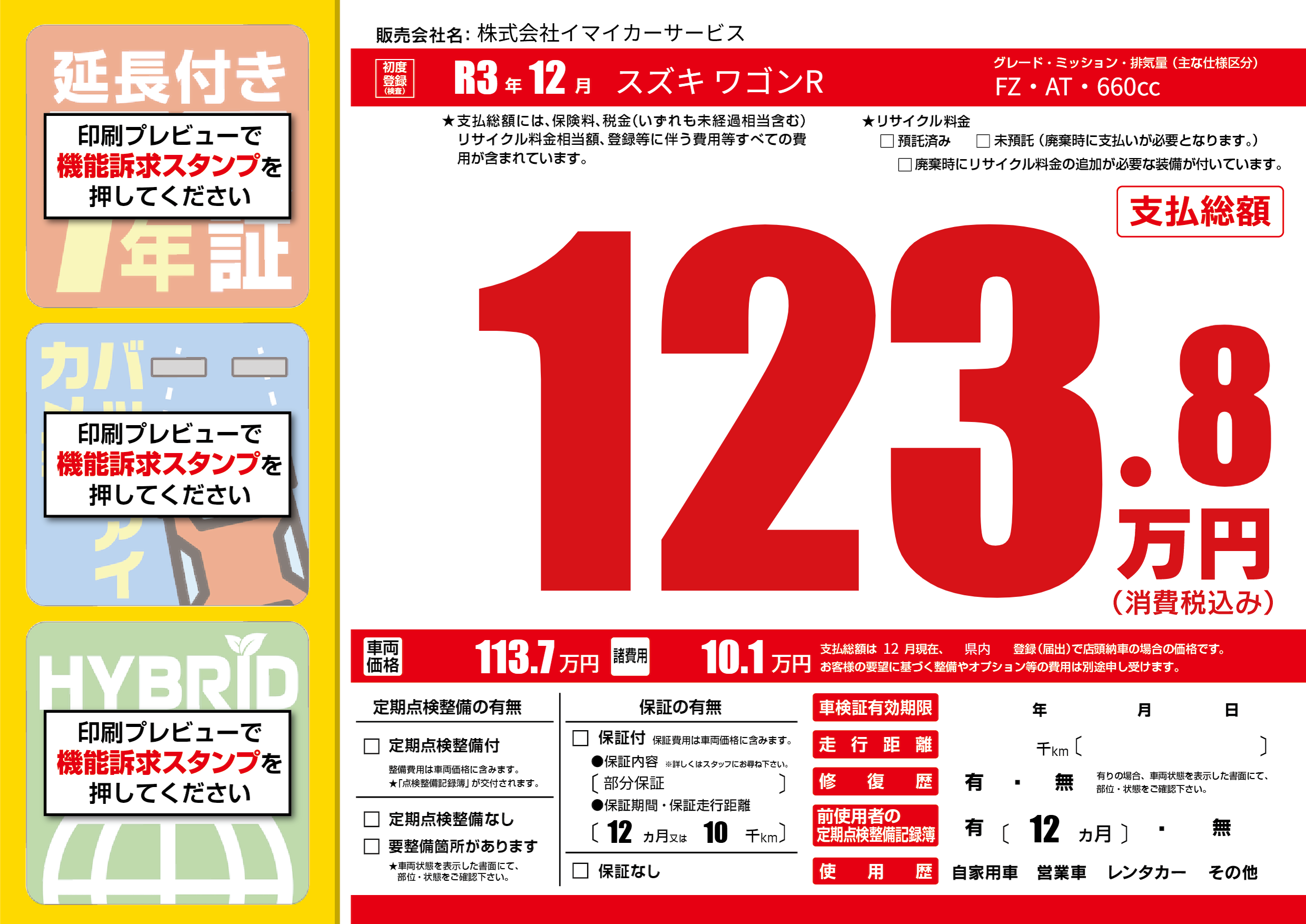 保証なし 保証内容(部分保証) 12ヶ月または(10)千kmまで |