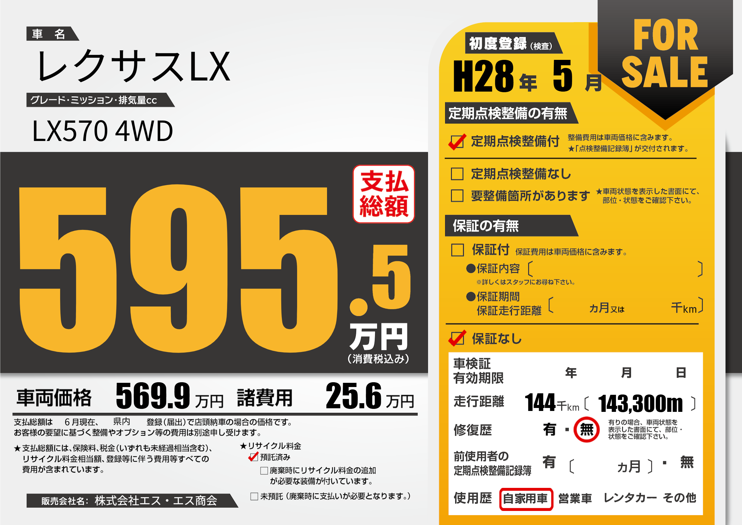 | 車名 | レクサスLX | グレード ミッション 排気量 |