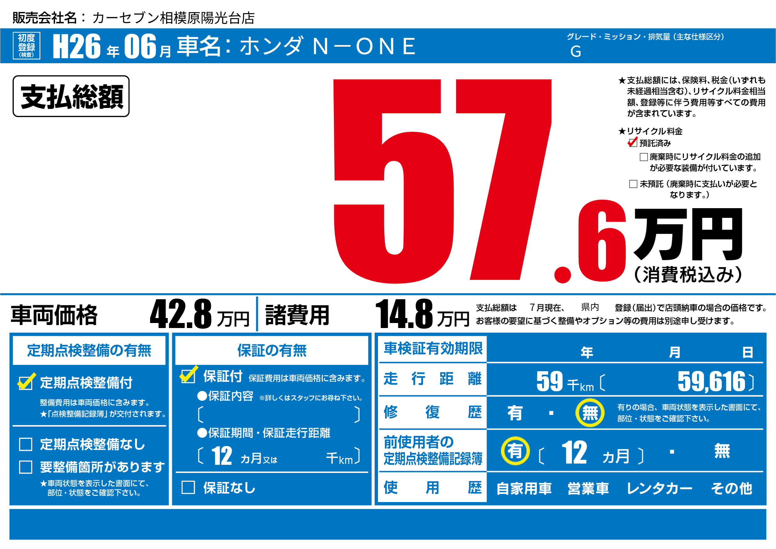 | 走行キロ | 5.9万km | ||