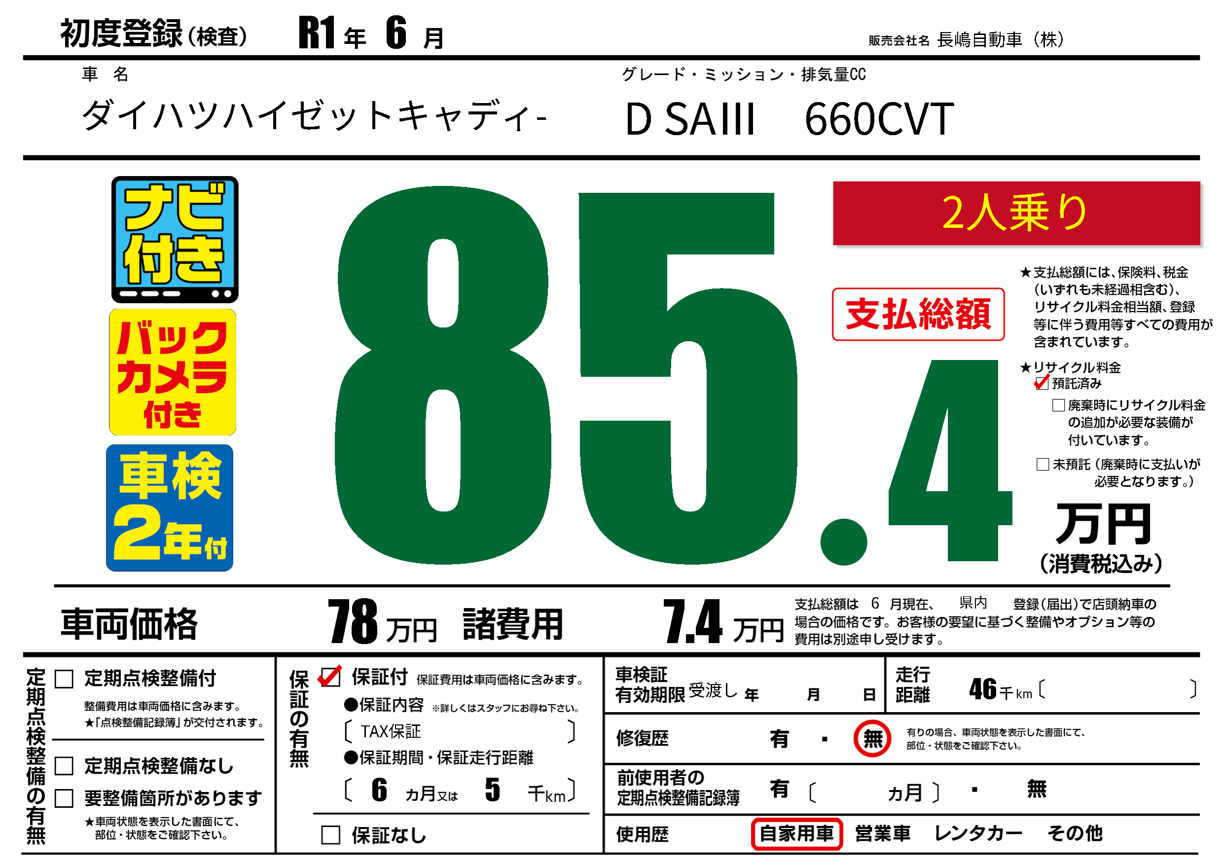 保証付き 保証内容(TAX保証) 6ヶ月または(5)千kmまで |