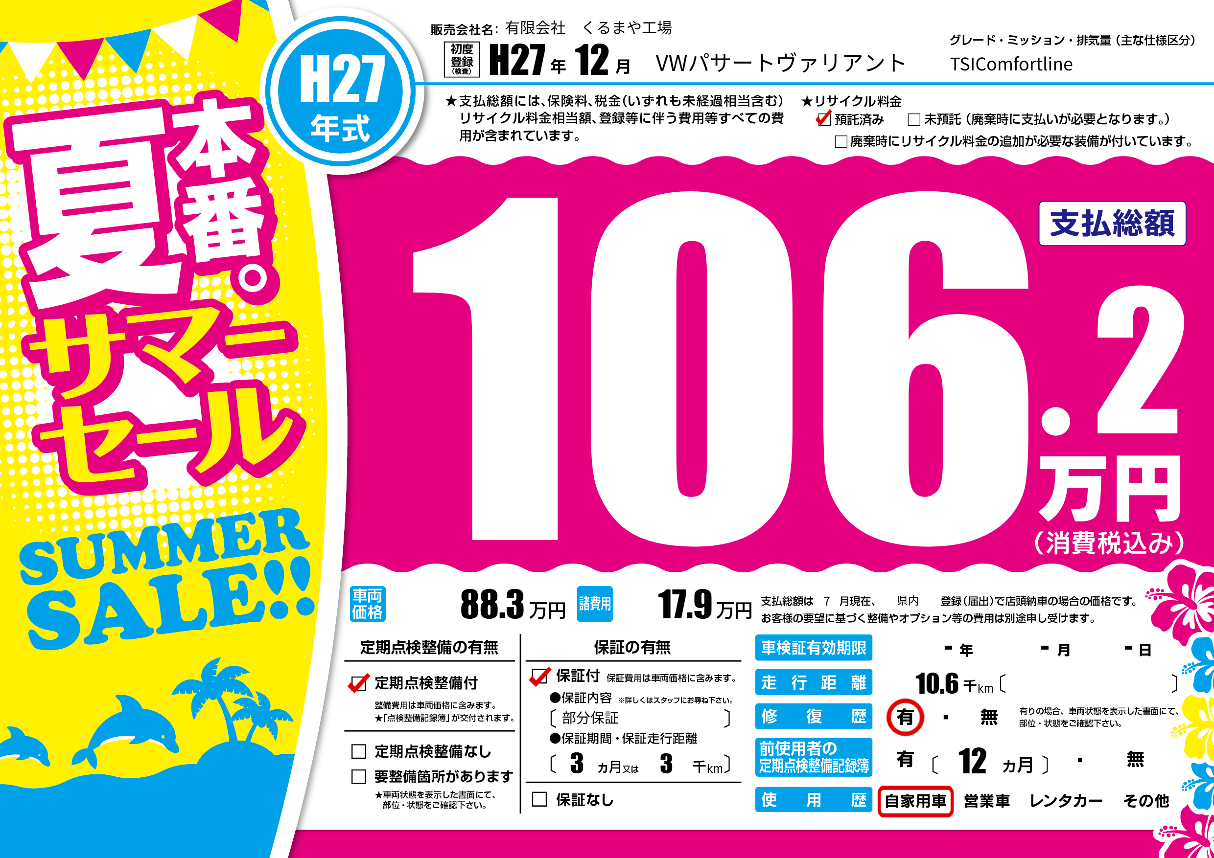 | 車名 | VWパサートヴァリアント | グレード ミッション 排気量 |