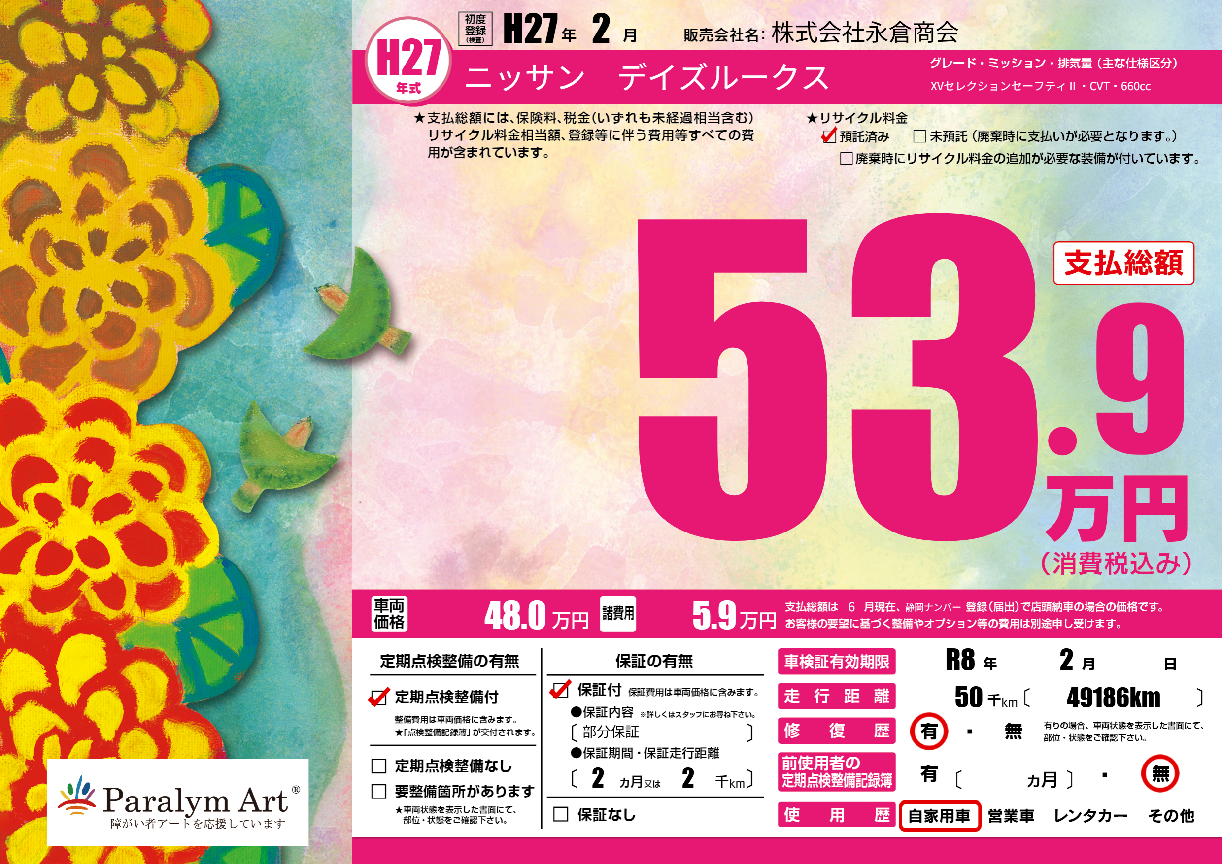 | 車名 | ニッサン デイズルークス | グレード ミッション 排気量 |