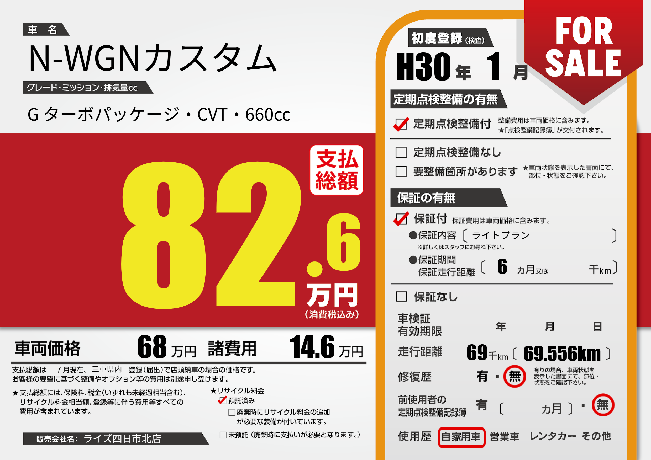 | 車名 | N-WGNカスタム | グレード ミッション 排気量 |