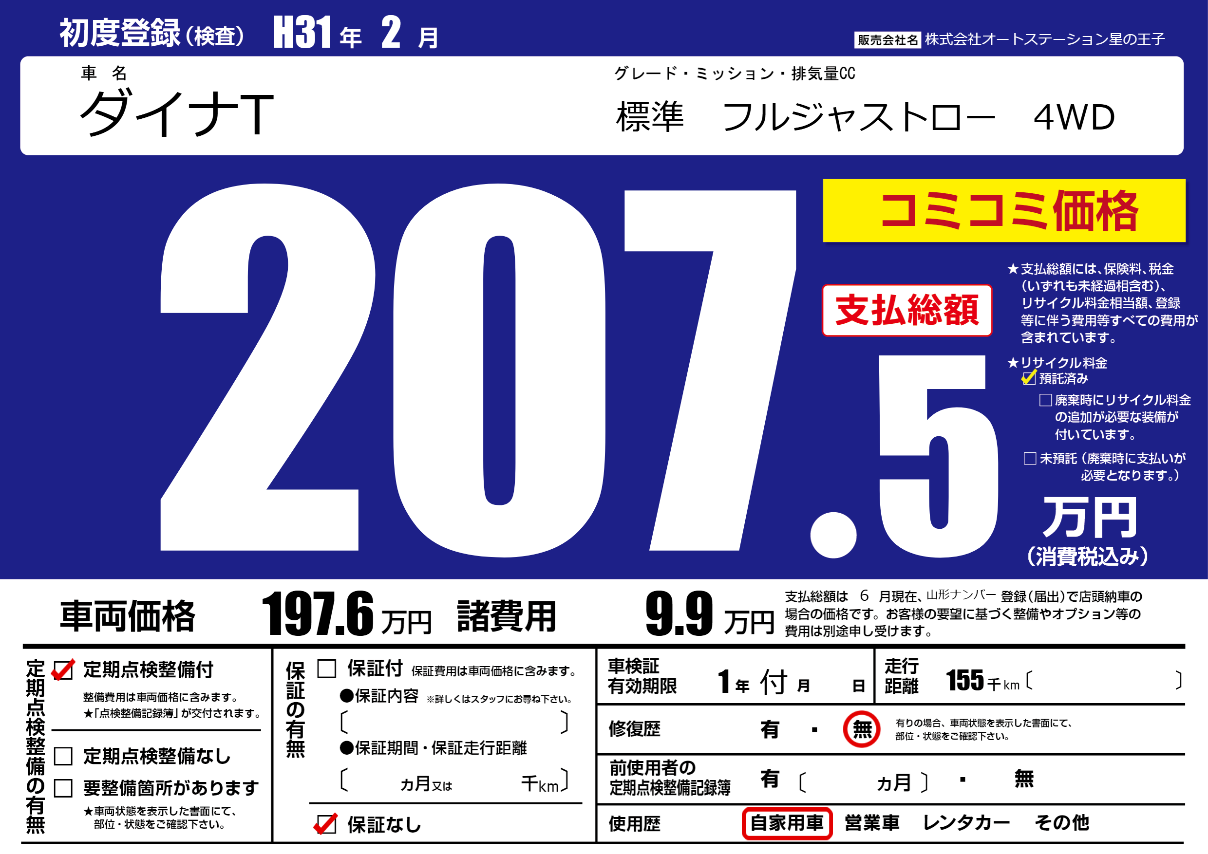 | 定期点検整備 | 定期点検整備あり | ||