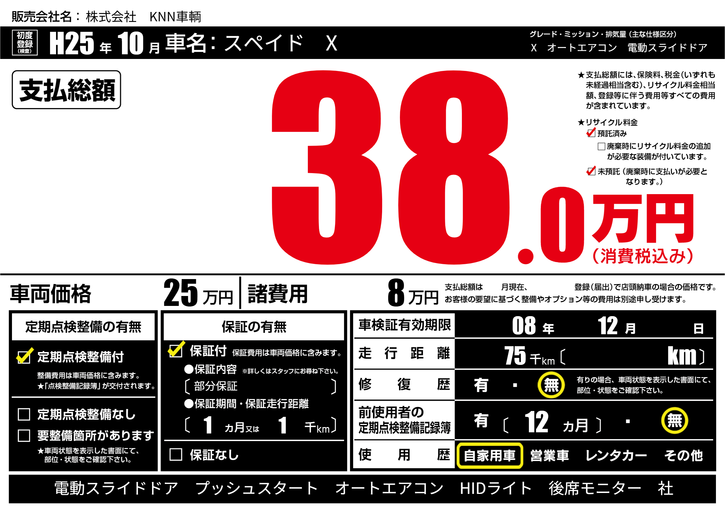 | 車検制限 | 08年 12月 - 日 | ||