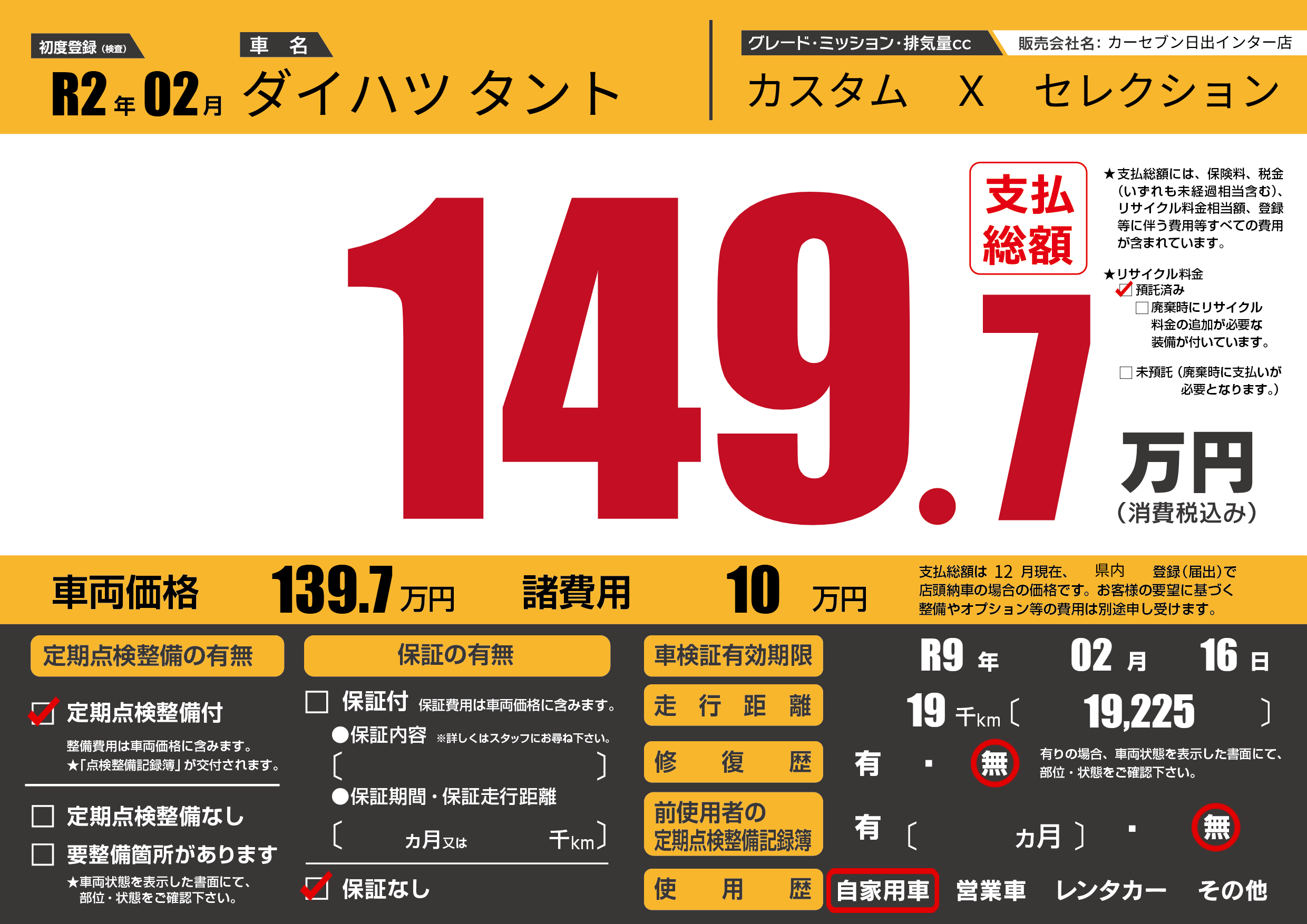 | 定期点検整備 | 定期点検整備あり | ||