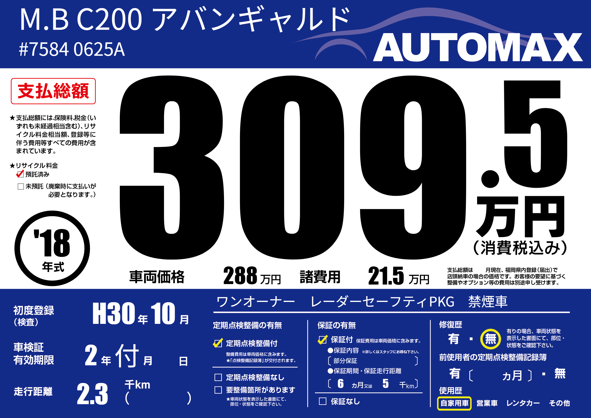 | 車名 | M.B C200 アバンギャルド | グレード ミッション 排気量 |