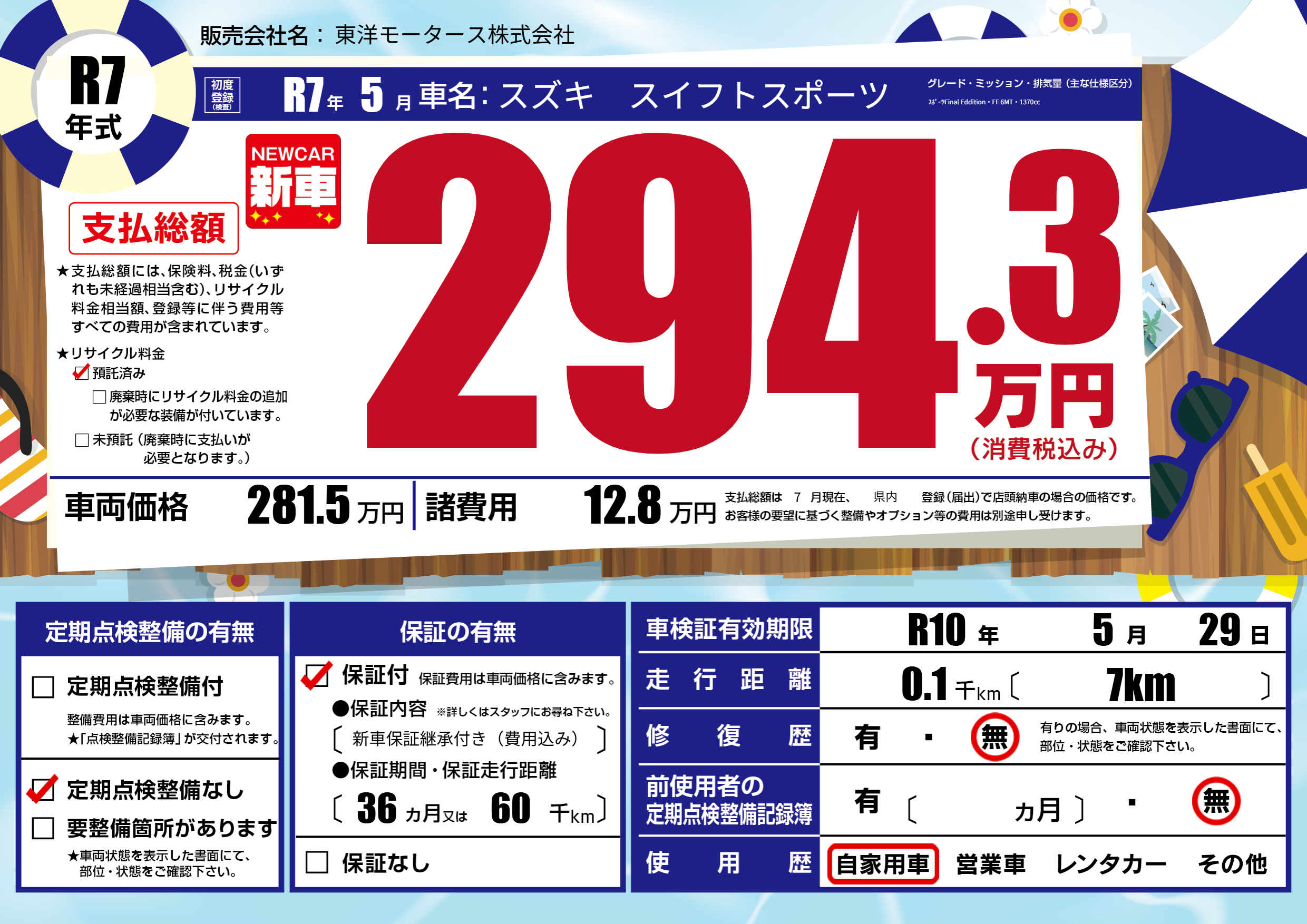 | 車名 | スズキ スイフトスポーツ | グレード ミッション 排気量 |