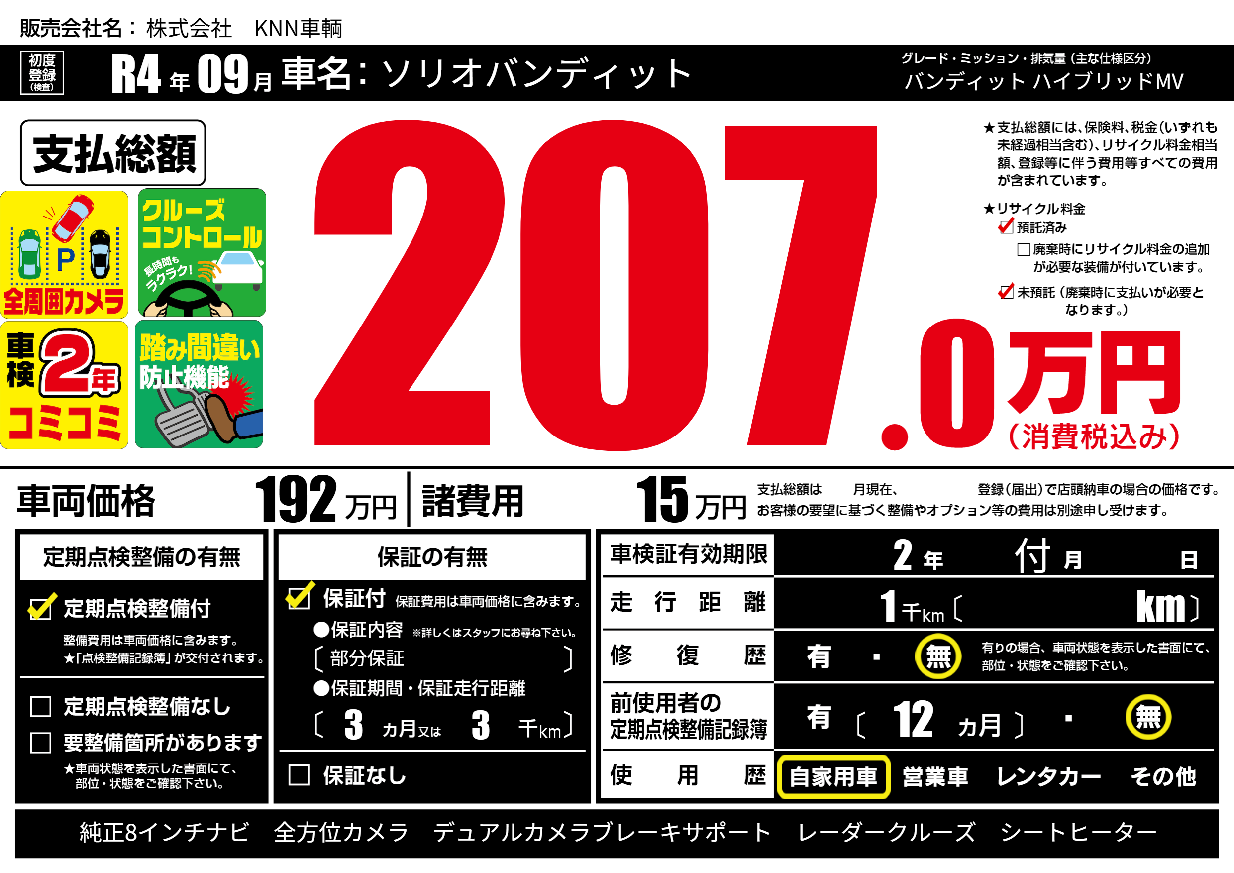 | 走行キロ | 0.1万km | 初年度登録 | R4年09月 |