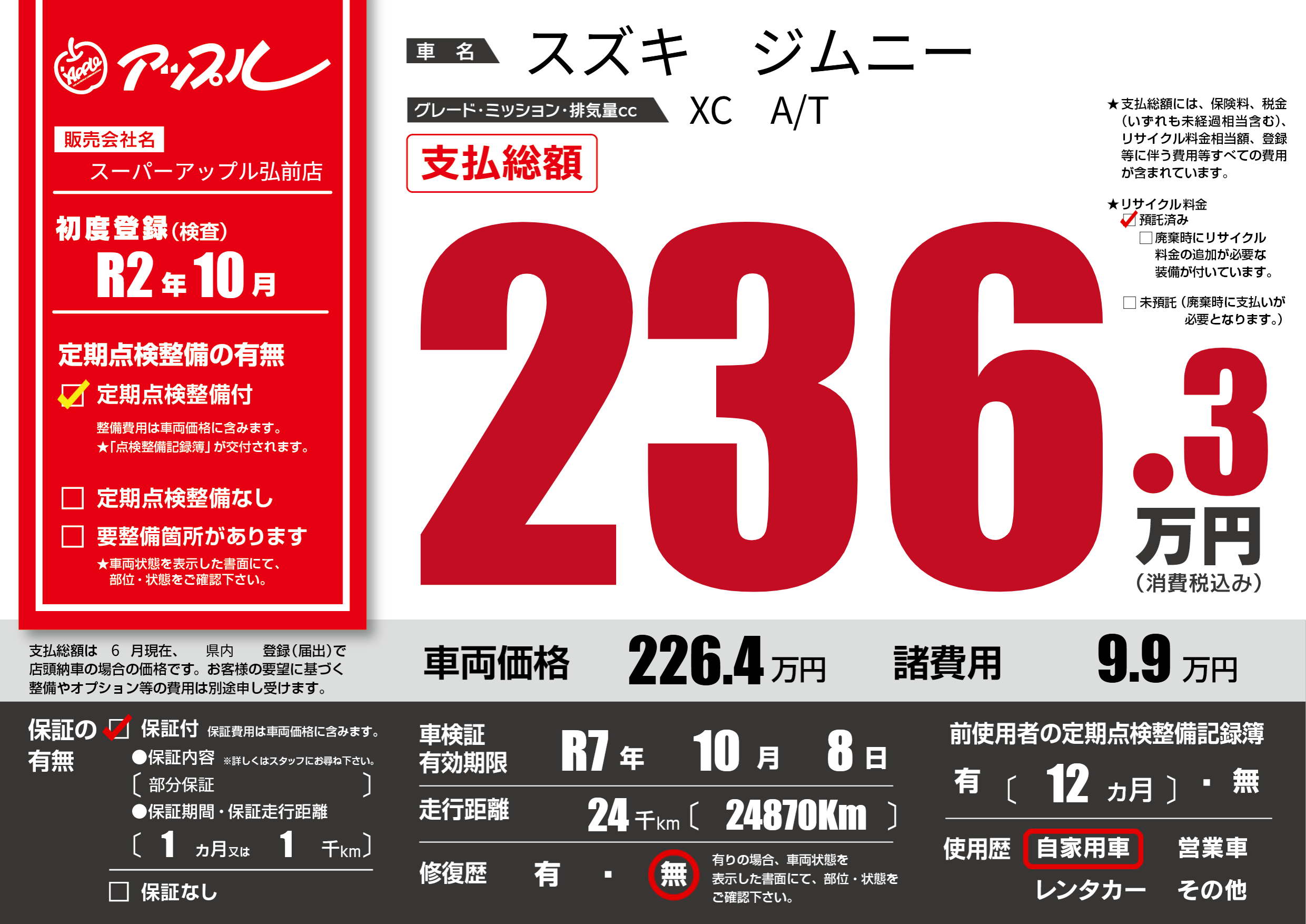 | 走行キロ | 2.4万km | 初年度登録 | R2年10月 |