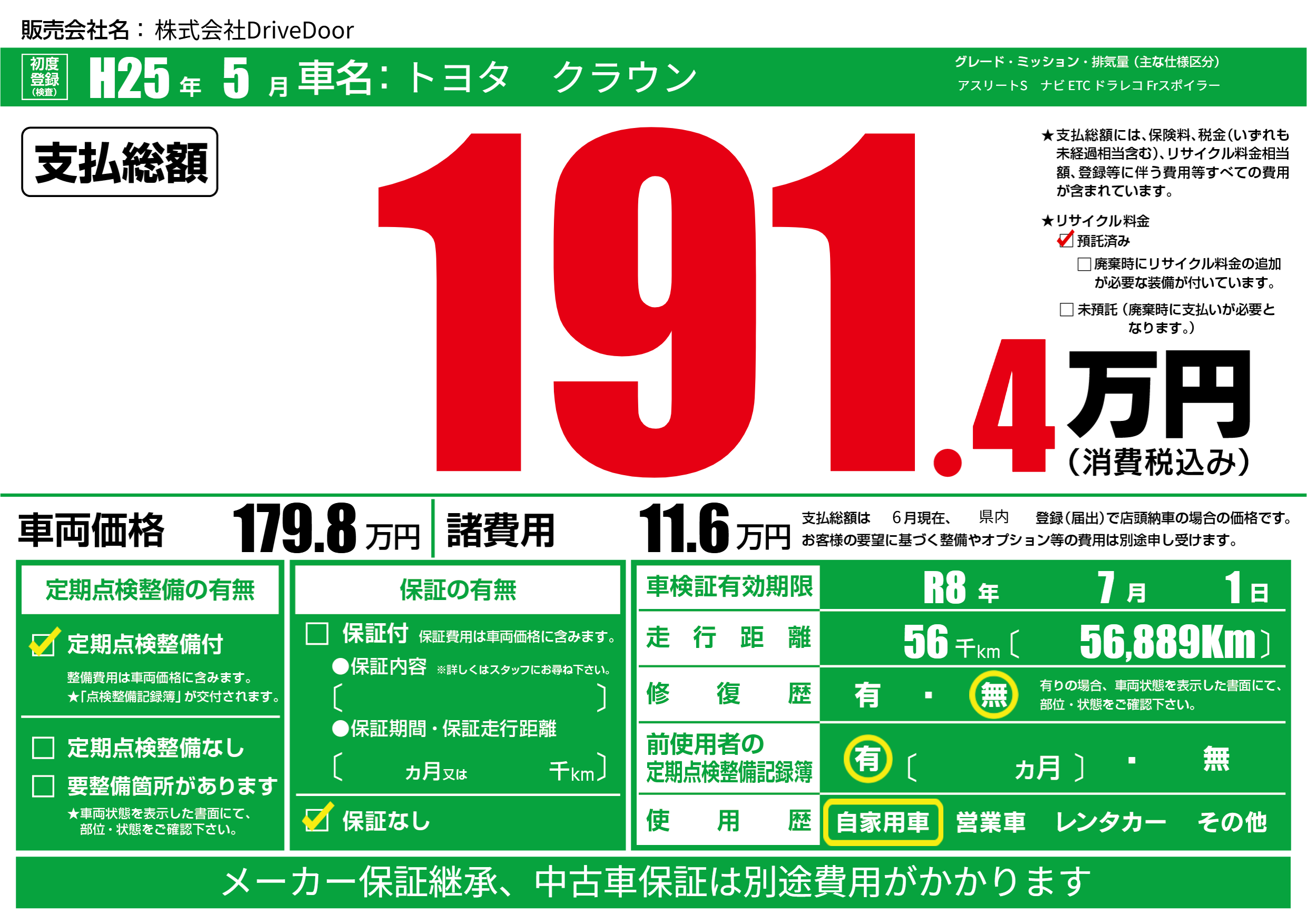 | リサイクル料金 預託済 |