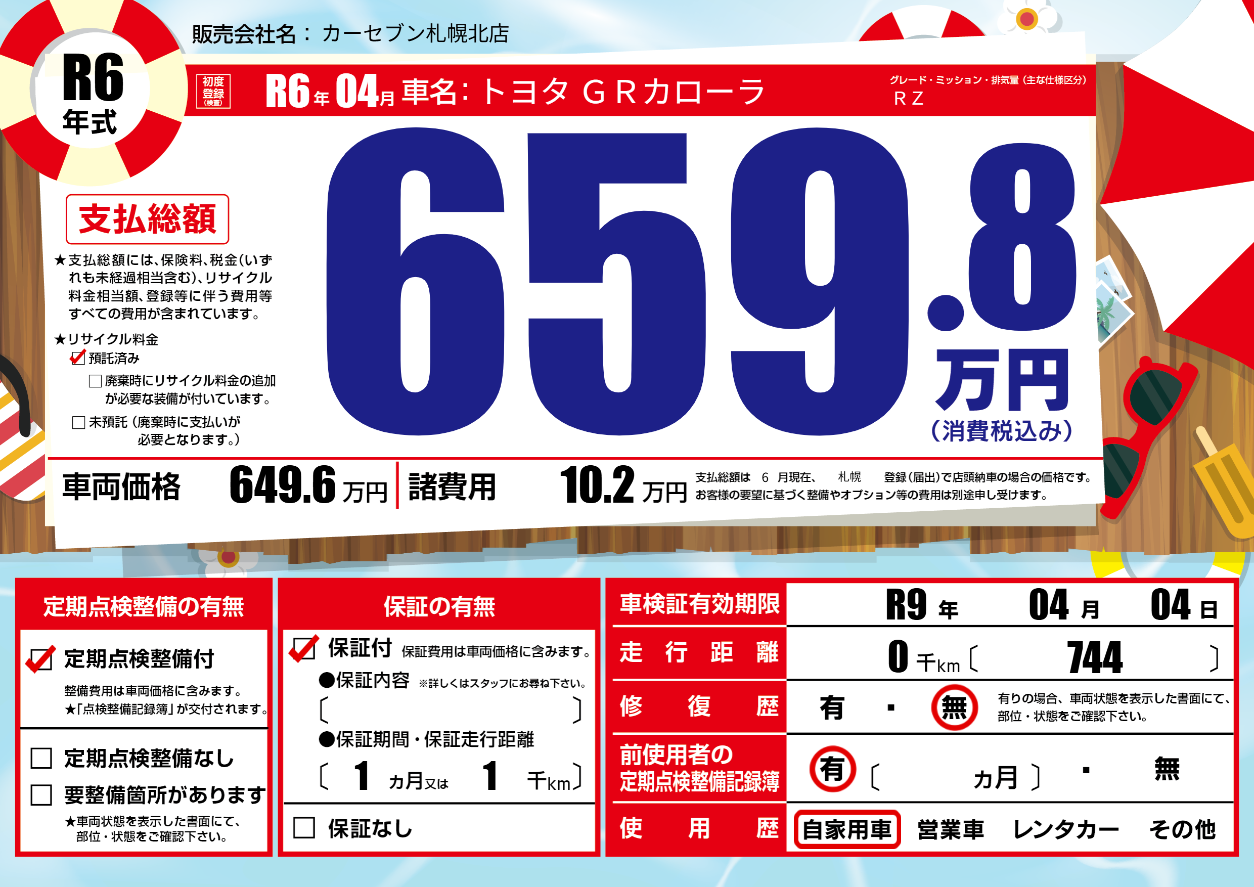 | 走行キロ | - | 初年度登録 | R6年04月 |