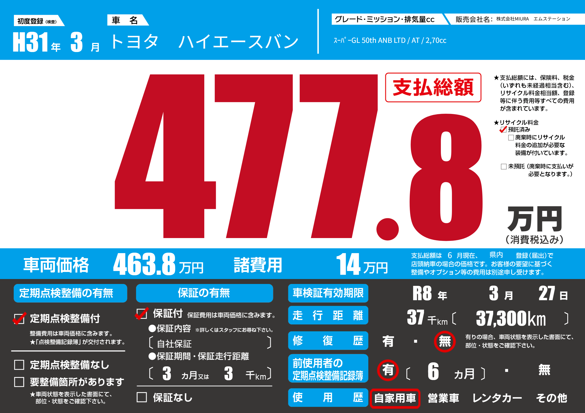 車検制限 R8年 3月 27日