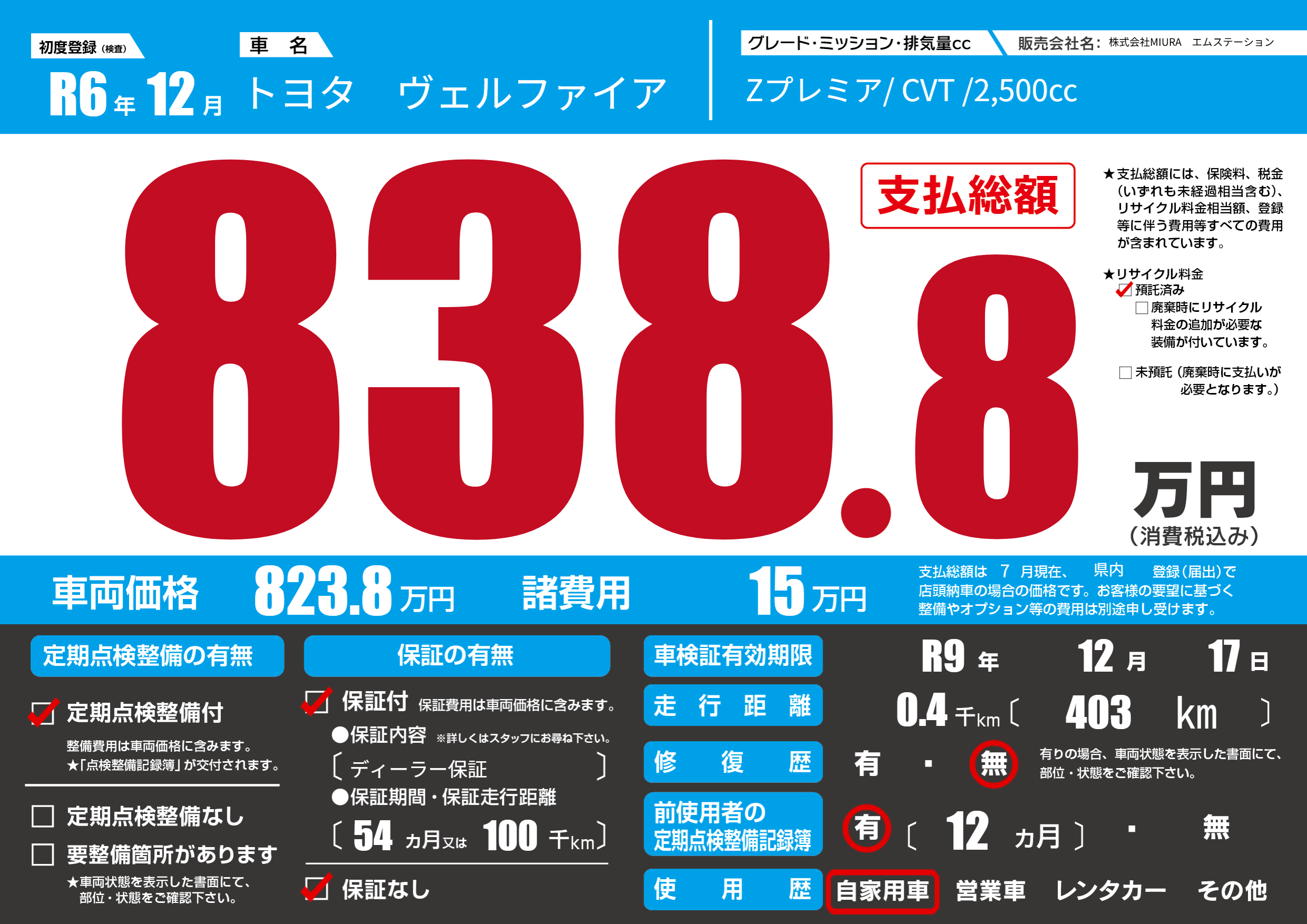 | 走行キロ | - | 初年度登録 | R6年12月 |