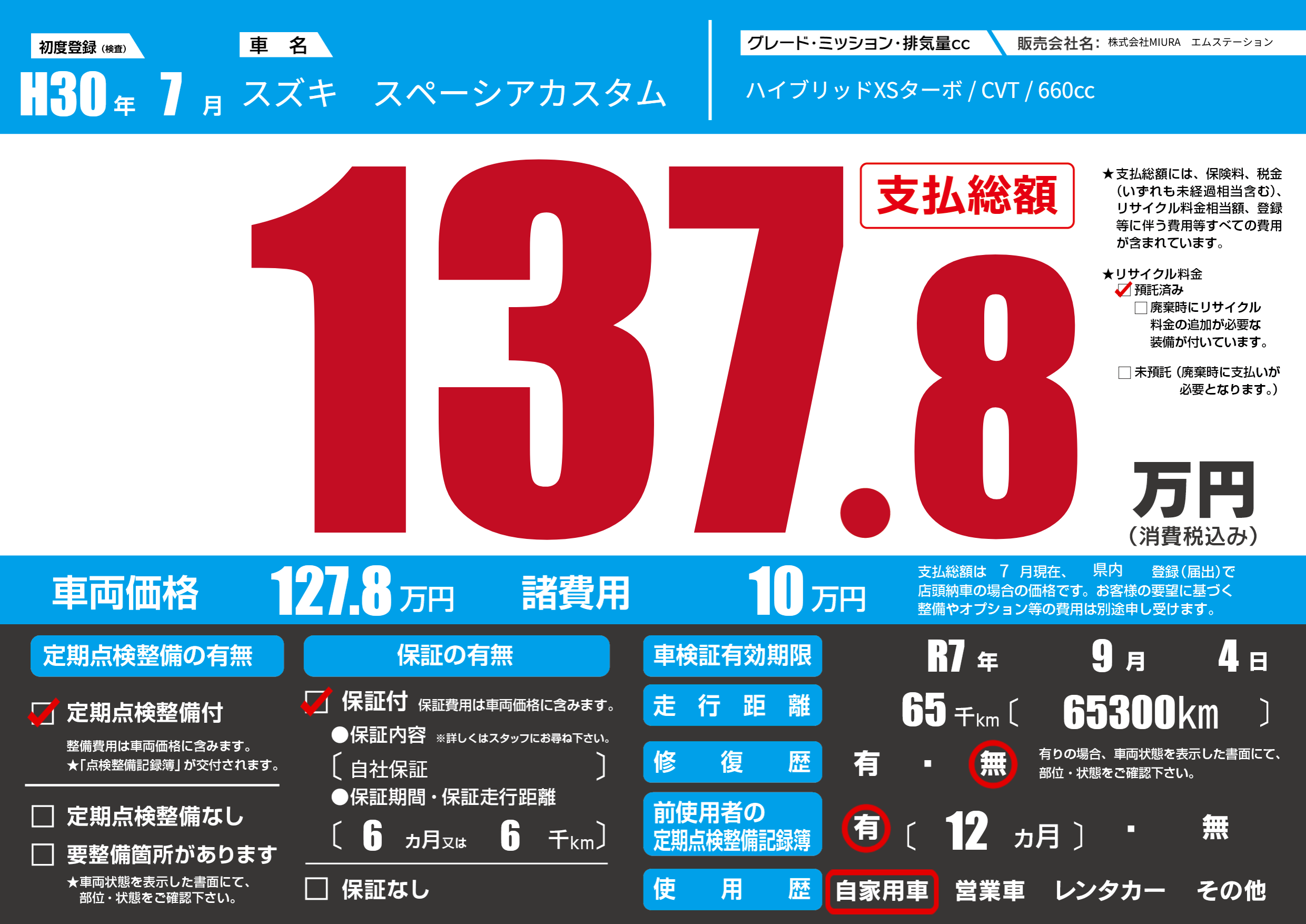 | 車検制限 | R7年 9月 4日 | ||