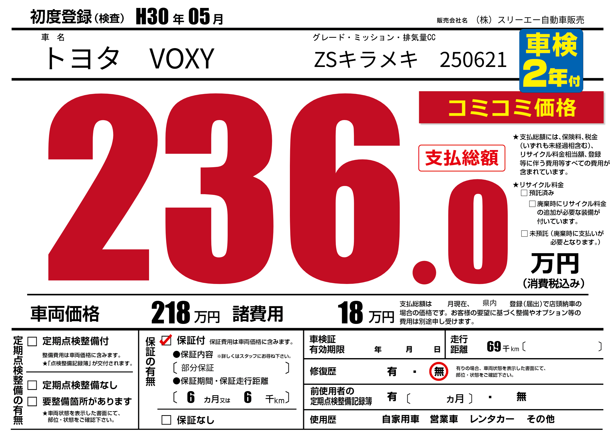 保証付き 保証内容(部分保証) 6ヶ月または(6)千kmまで |